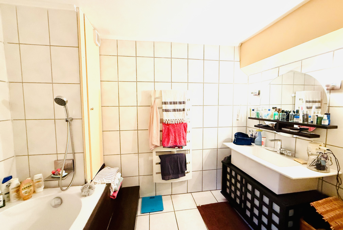 Une grande salle de bains, des toilettes séparées, un parquet en bois massif et de nombreux rangements viennent compléter ce bien d’exception.