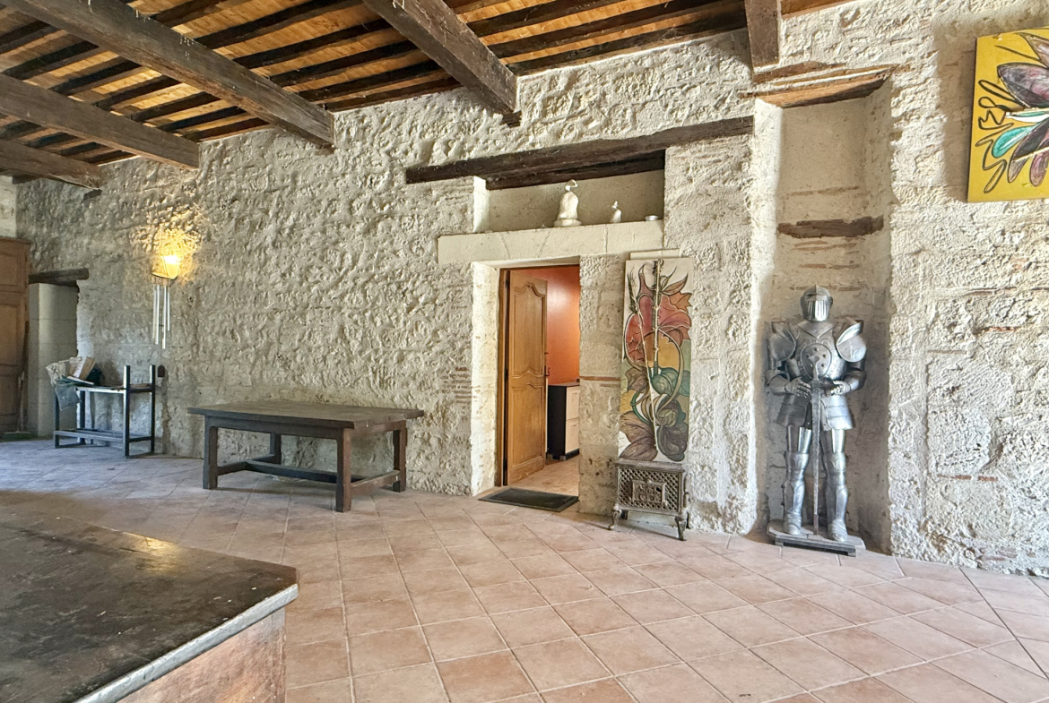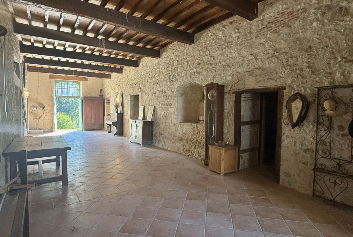 Dans un cadre champêtre et paisible, près d’Agen et du Gers, cette grande demeure de plain-pied séduit par son élégance, son authenticité et les nombreuses possibilités qu’elle offre. Elle s’organise autour d’un vaste hall central, avec plafonds de trois mètres de haut , qui donne d’emblée une belle impression d’espace et de caractère.