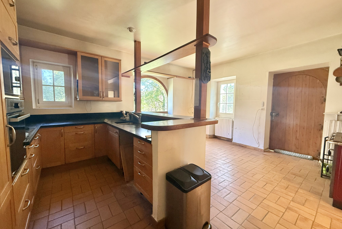 L’aile droite a été transformée en gîte indépendant. On y trouve une grande pièce à vivre avec cuisine, salle à manger et salon équipé d’un poêle à bois, deux chambres avec salle de bains commune, et deux autres chambres avec chacune sa propre salle d’eau parfait pour accueillir des invités ou de la famille.