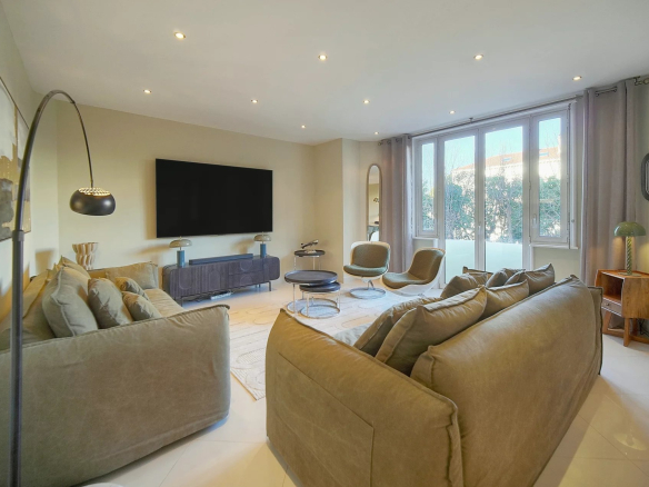 Ce très bel appartement dans un immeuble bourgeois, situé à Pointe Croisette à Cannes, propose un cadre de vie confortable et moderne. La pièce principale, lumineuse et spacieuse de 42 m2, allie élégance et fonctionnalité, idéale pour des moments de détente en famille ou entre amis. Les larges fenêtres laissent pénétrer une abondante lumière naturelle, créant une atmosphère chaleureuse et accueillante.