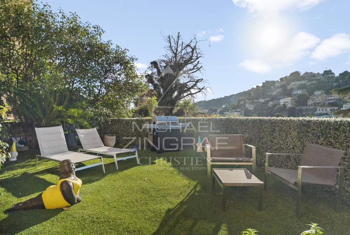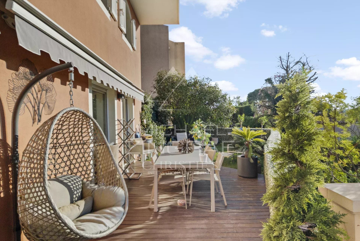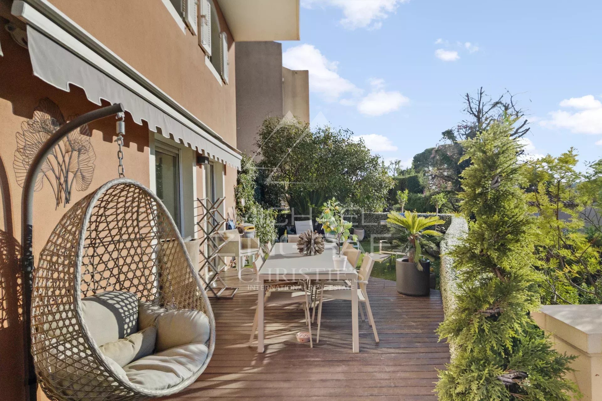 À l’extérieur, un jardin privatif accompagné d’une large terrasse offre un cadre idéal pour profiter du climat azuréen dans un environnement privilégié.