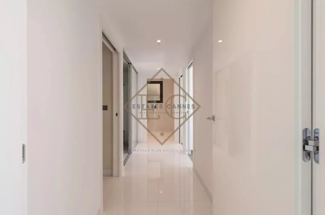 L’appartement s’ouvre sur un vaste séjour baigné de lumière naturelle grâce à ses larges baies vitrées, offrant un accès direct à la terrasse. Trois chambres spacieuses, également ouvertes sur l’extérieur, permettent de profiter pleinement de l’ensoleillement et d’une vue panoramique imprenable sur la mer Méditerranée et la Principauté de Monaco. Ce bien comprend également deux salles de bains modernes et une cuisine ouverte, entièrement équipée et astucieusement intégrée à l’espace de vie pour une parfaite harmonie.