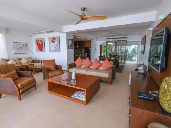Le condo a également été décoré par Norbert Ackermann, un designer de premier plan en Thaïlande. Comprenant une piscine et un club-house, ce condo au design unique dispose d’une porte vitrée très large donnant sur le patio, qui agrandit la superficie de 466,15 mètres carrés en une maison d’escapade privée spectaculaire.