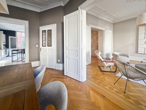 Venez découvrir ce magnifique appartement 7 pièces en duplex situé dans une rue d’exception du prestigieux quartier de l’Orangerie à Strasbourg.
