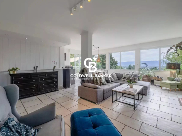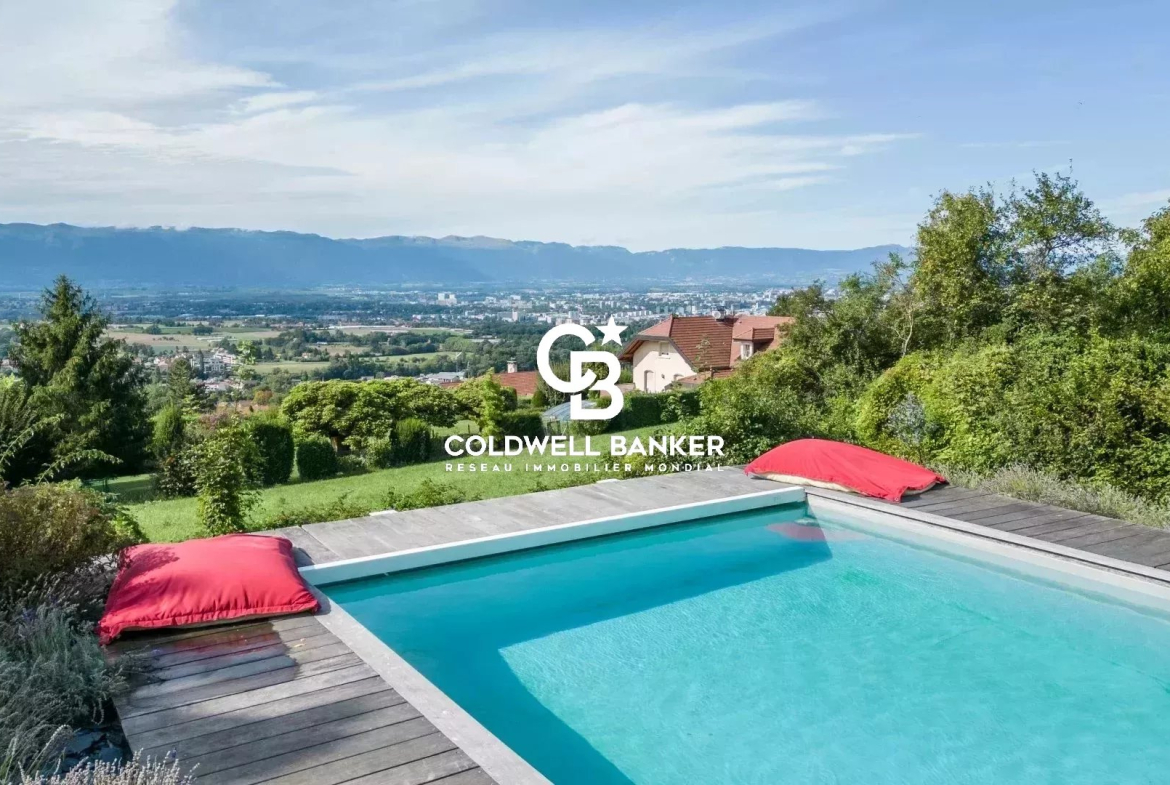 A seulement 10 min de la frontière suisse et des transports TPG, cette magnifique propriété de 450 m² est située dans un cadre naturel exceptionnel. Elle bénéficie d’une vue imprenable sur les montagnes environnantes, qui offrent un paysage verdoyant et apaisant.