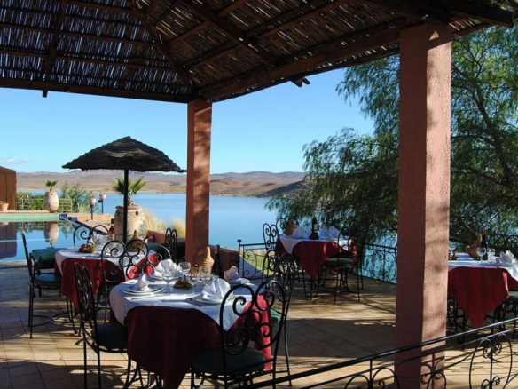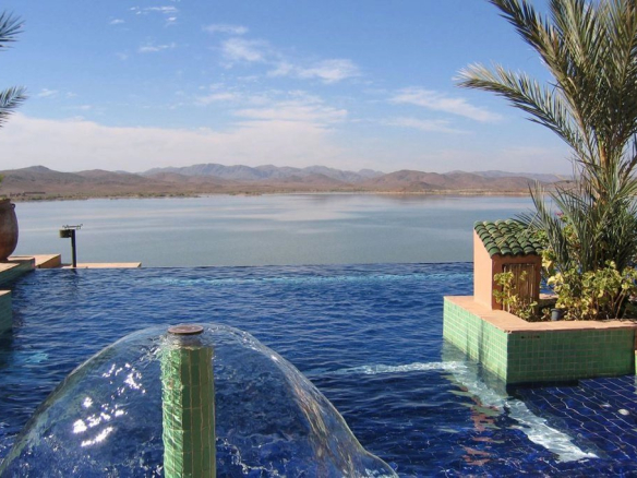La clientèle pourra également profiter d’une restauration sous tente berbère climatisée, d’un salon/bibliothèque avec cheminée et climatisation (ou chauffage l’hiver), d’une salle T.V climatisée, ainsi que de la piscine à débordement sur le Lac El Mansour dont les dimensions sont 15 m X 07 m + petit bassin pour les enfants.