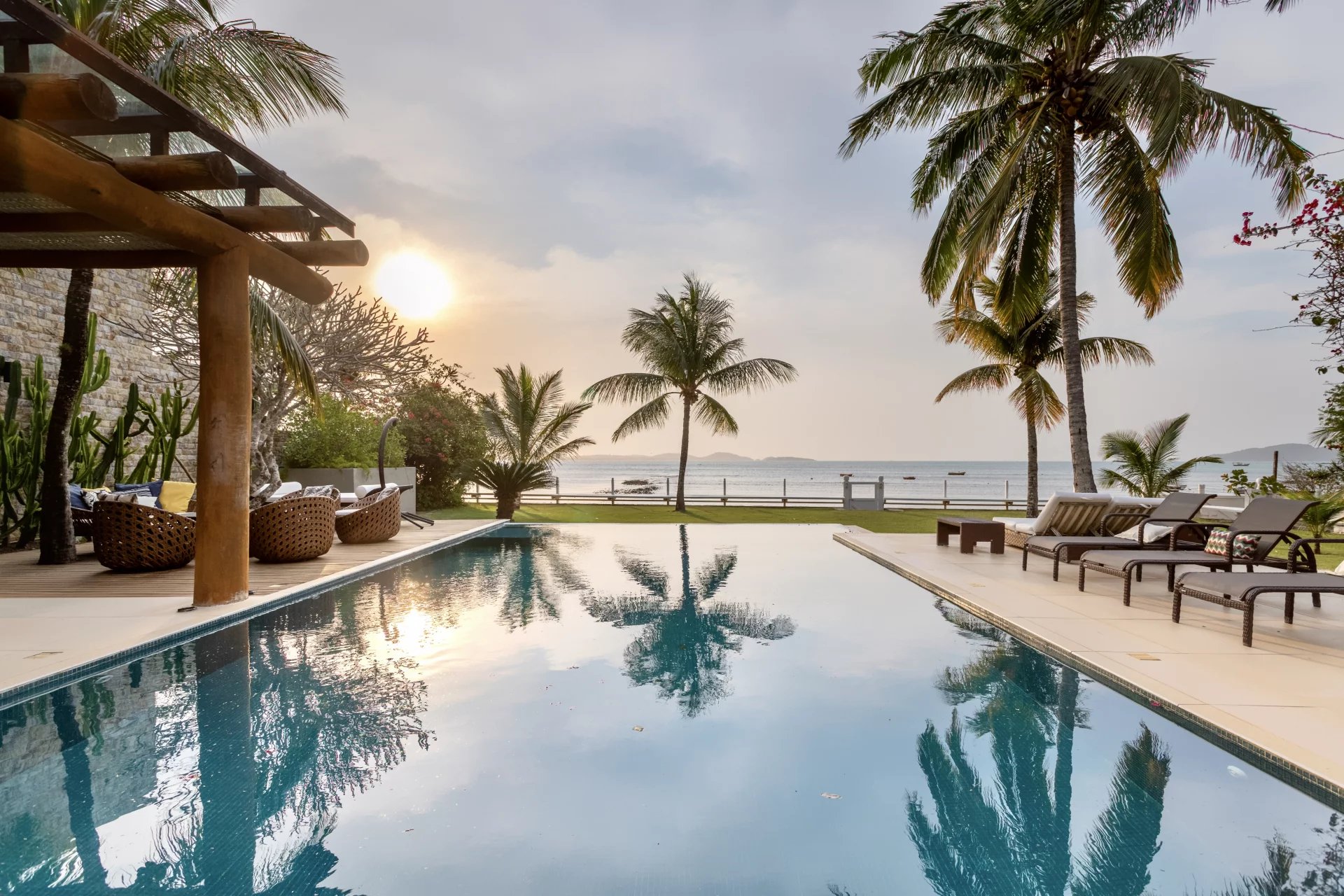 On notera aussi une superbe piscine design qui se prolonge face à la mer !
