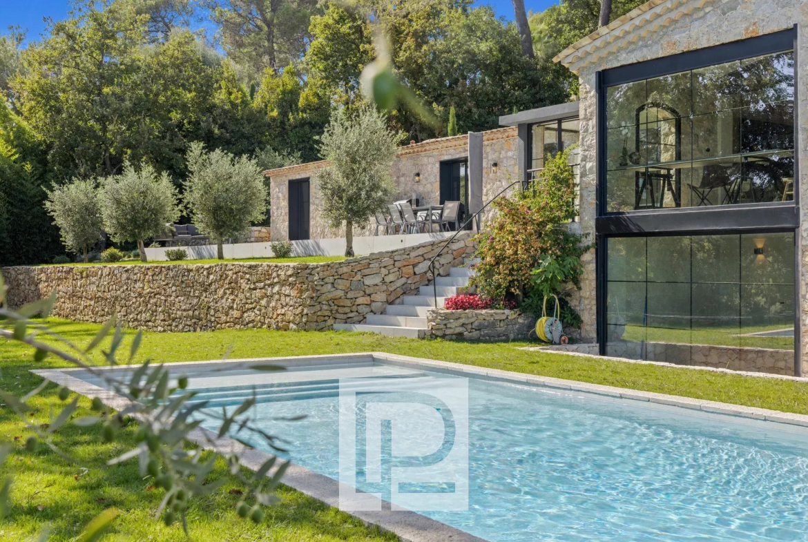 Au calme absolu, à seulement quelques minutes du village pittoresque de Valbonne, cette superbe bastide en pierre entièrement rénovée et agrandie offre une alliance parfaite entre charme provençal et modernité contemporaine.