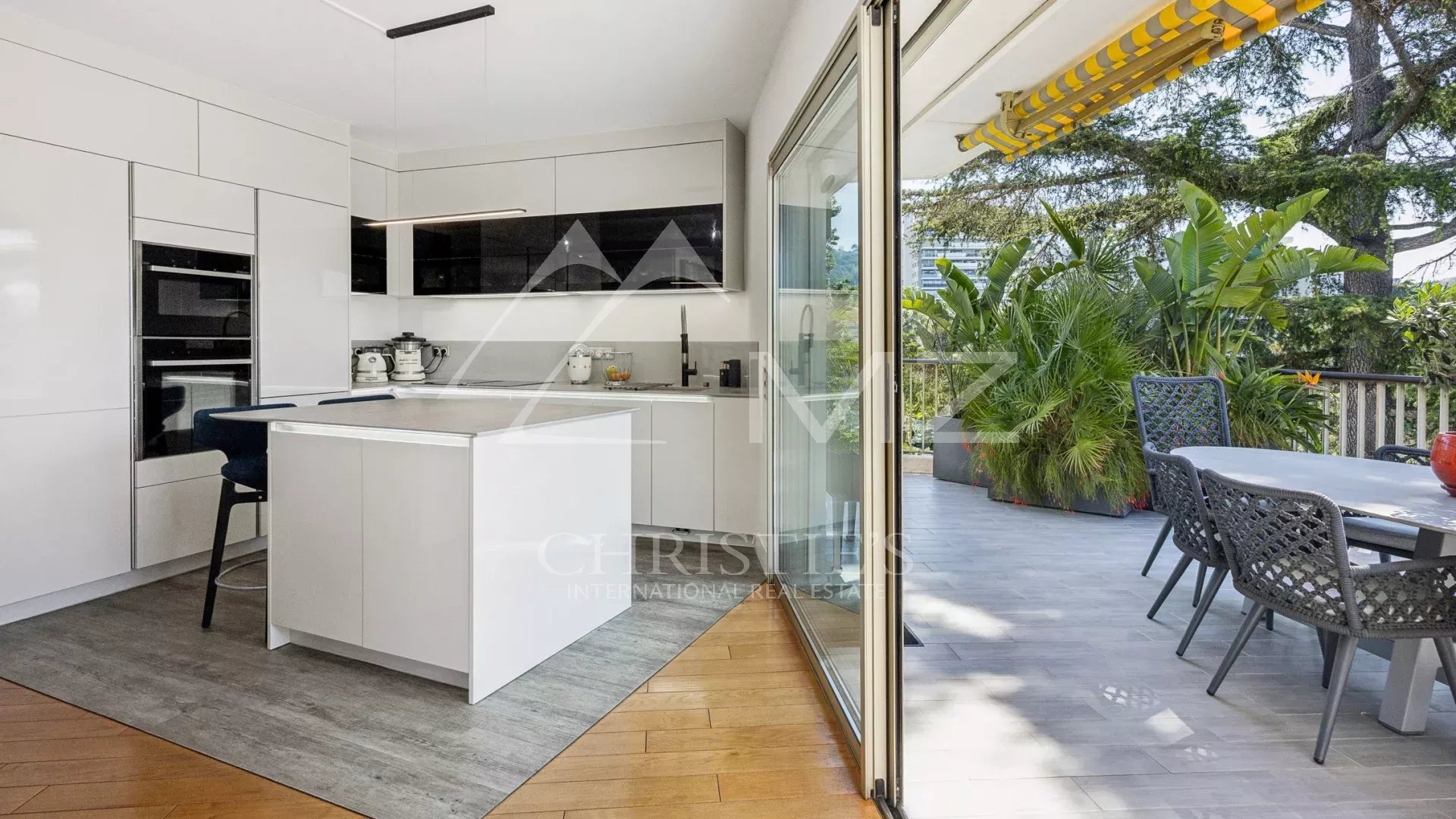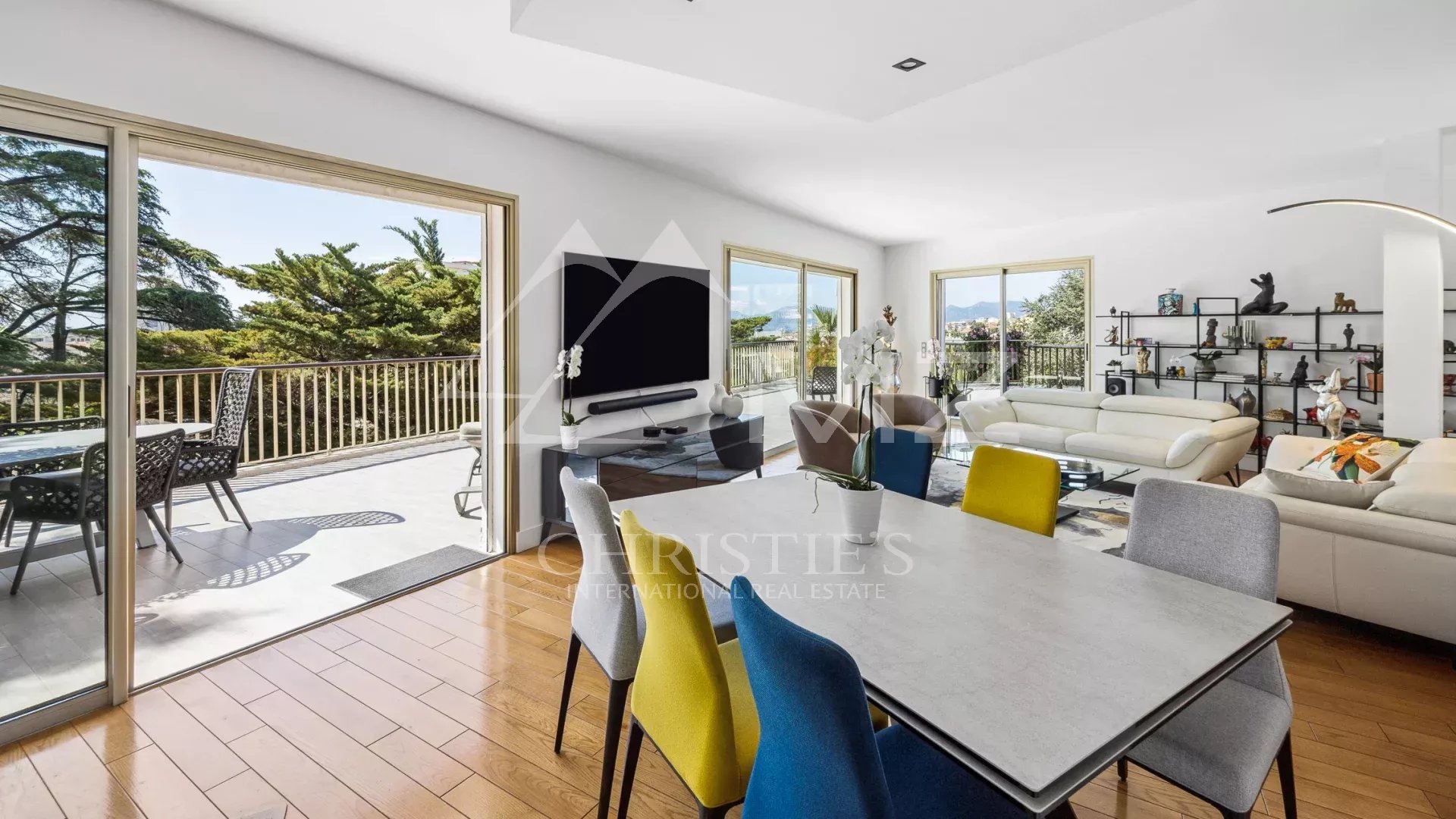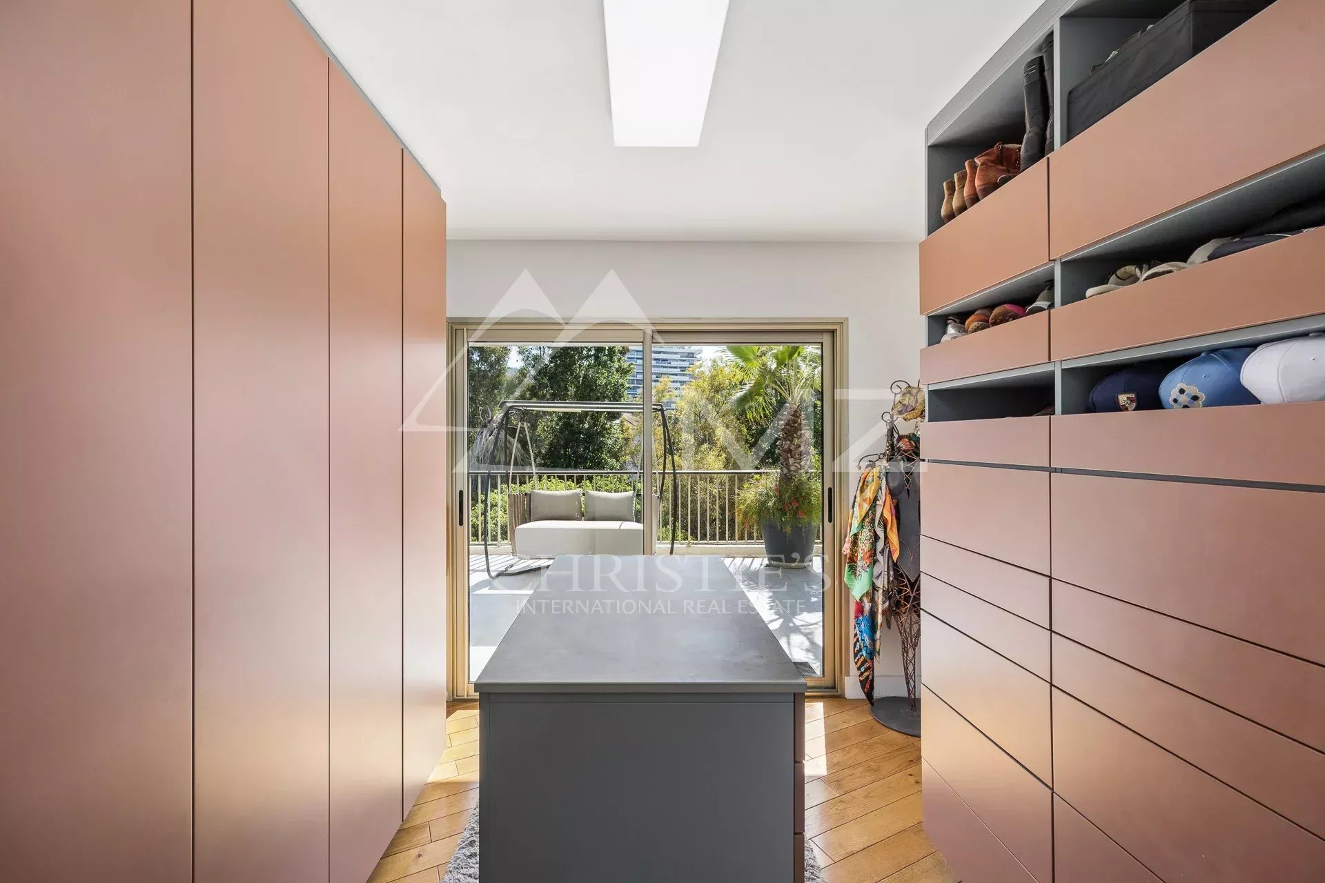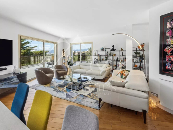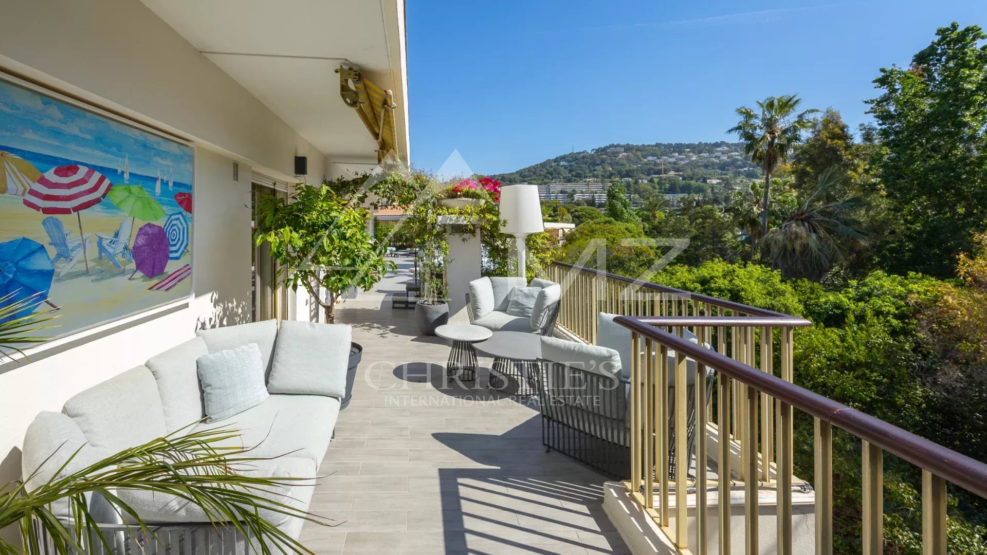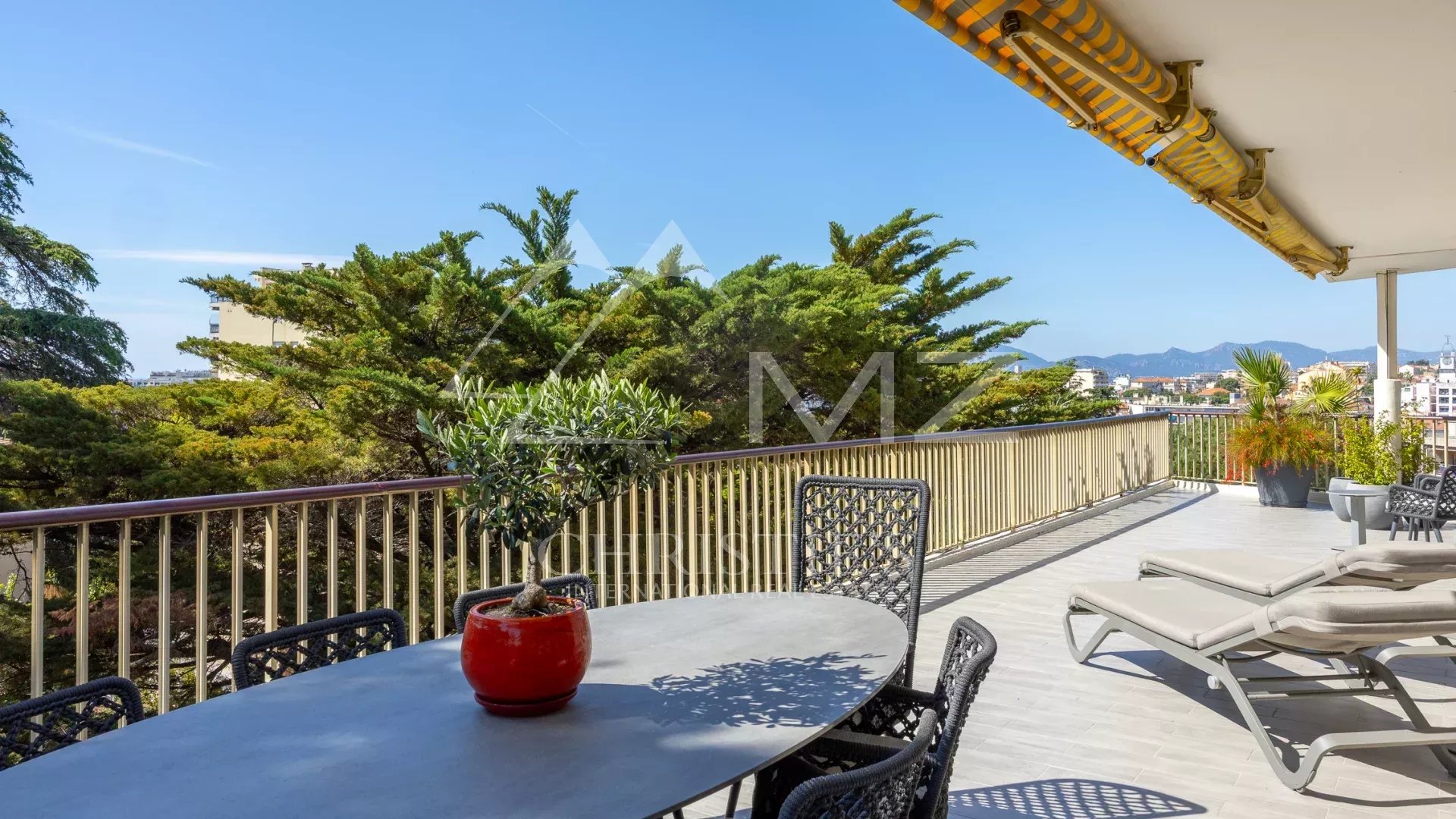 Coup de cœur pour ce penthouse niché dans la verdure dans un quartier résidentiel. Avec sa terrasse arborée de 280 m², cet espace extérieur, agrémenté d’un spa, se transforme en un jardin luxuriant, offrant différentes ambiances pour se détendre ou recevoir et profiter de la vue sur les collines et du bel aperçu mer.