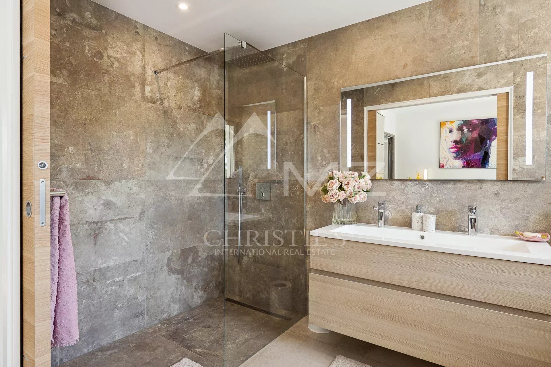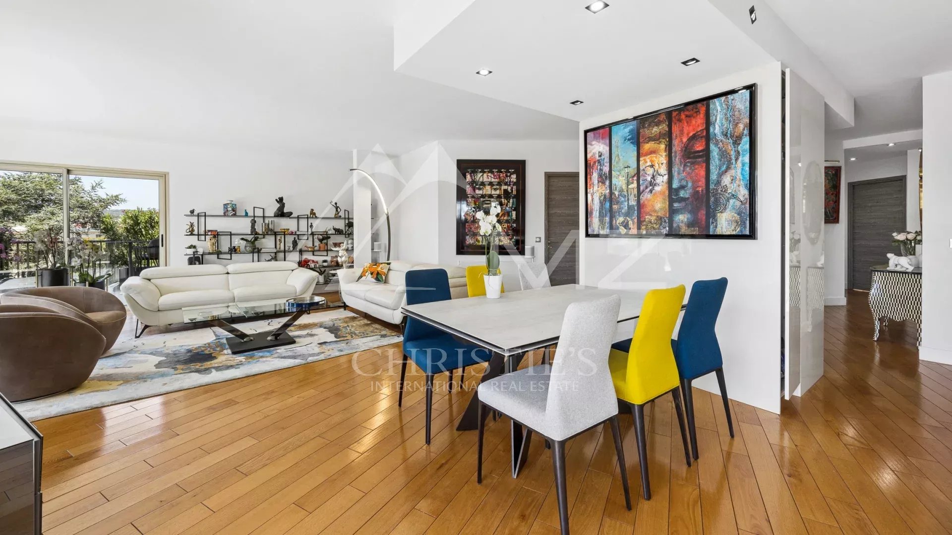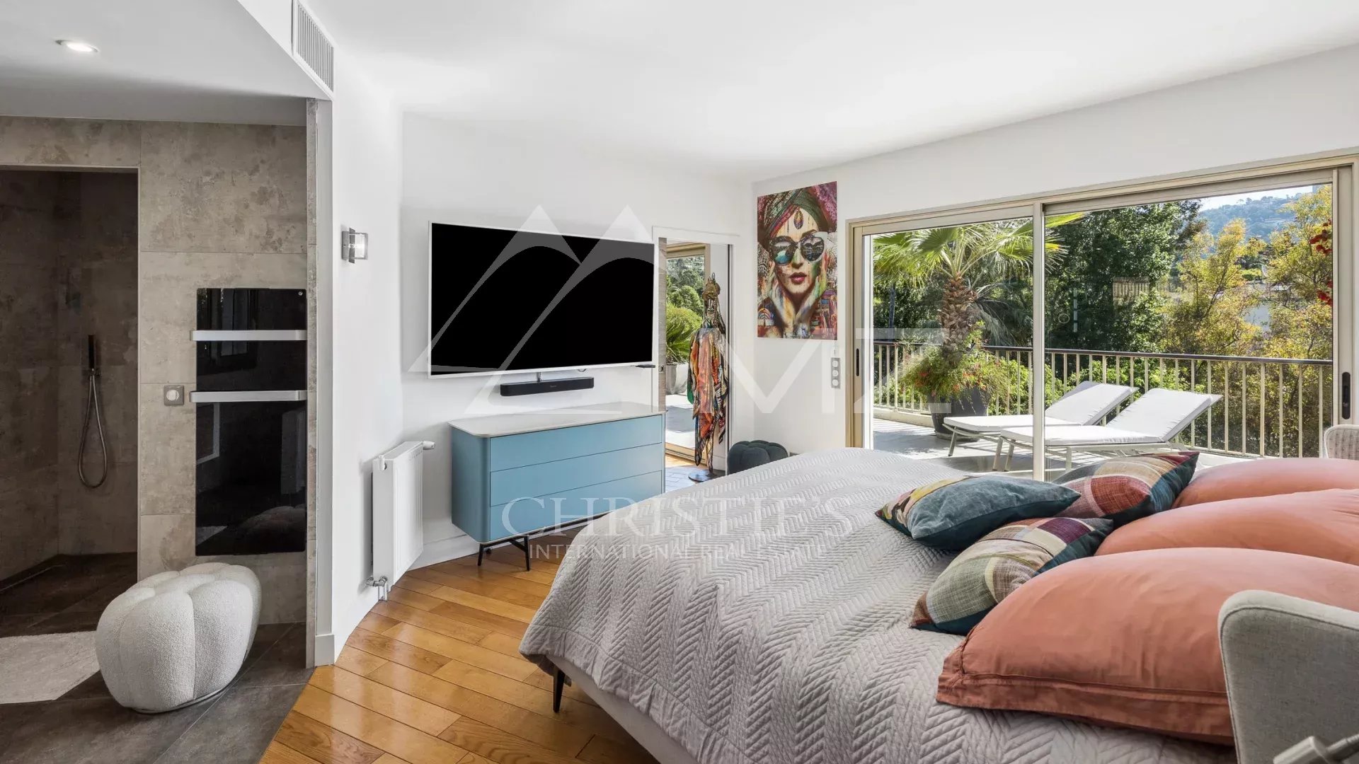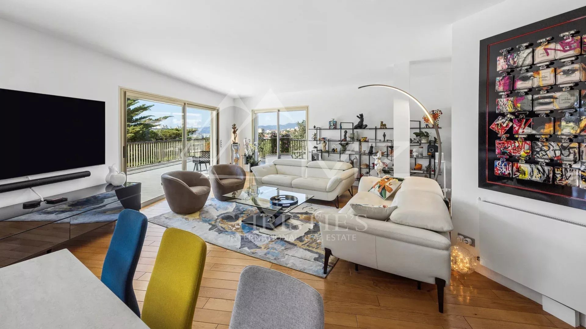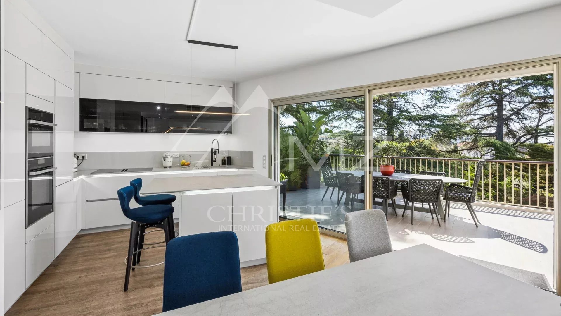 Coup de cœur pour ce penthouse niché dans la verdure dans un quartier résidentiel. Avec sa terrasse arborée de 280 m², cet espace extérieur, agrémenté d’un spa, se transforme en un jardin luxuriant, offrant différentes ambiances pour se détendre ou recevoir et profiter de la vue sur les collines et du bel aperçu mer.