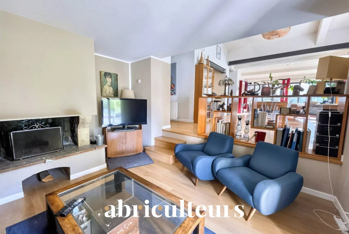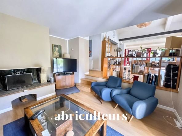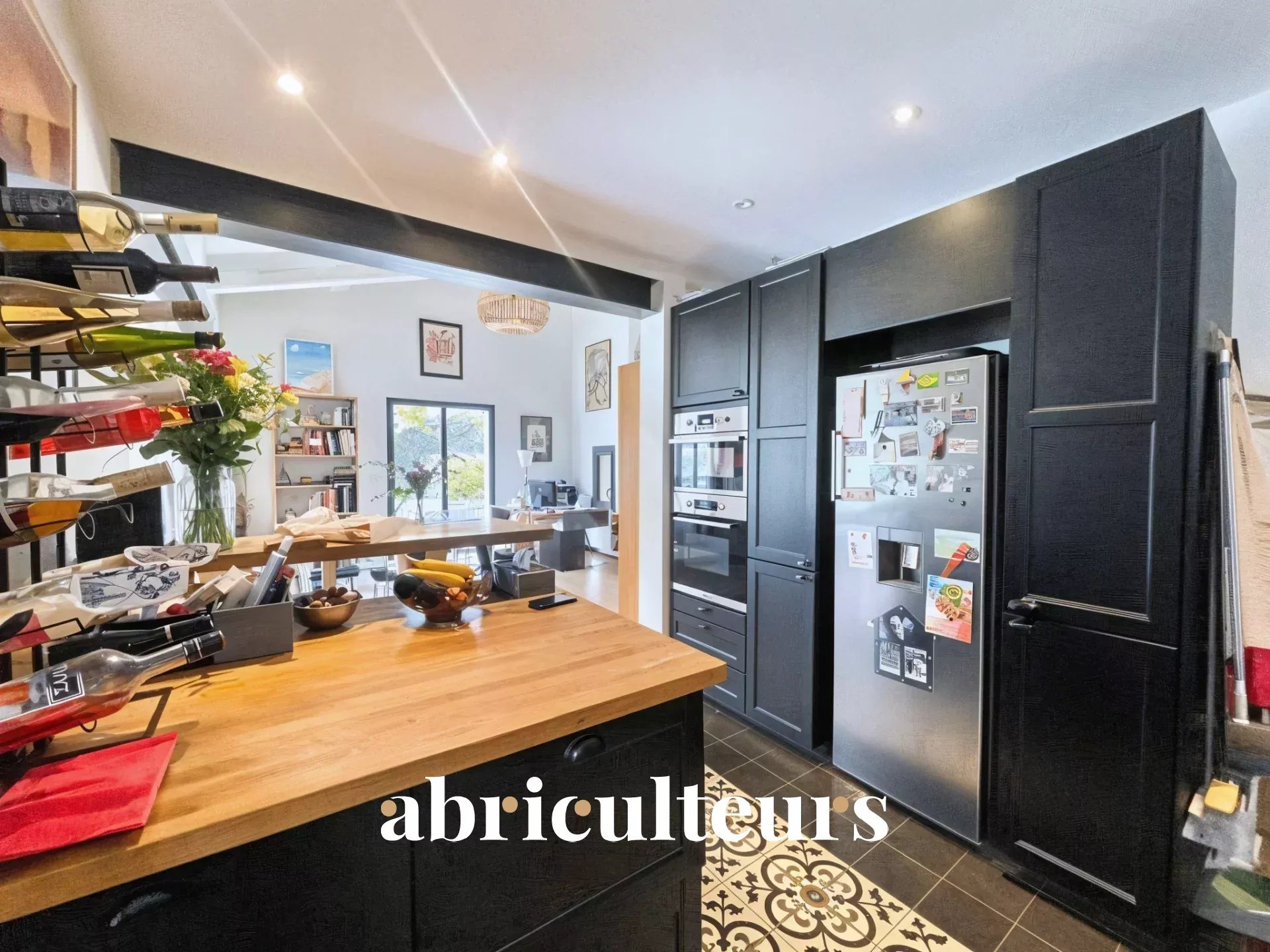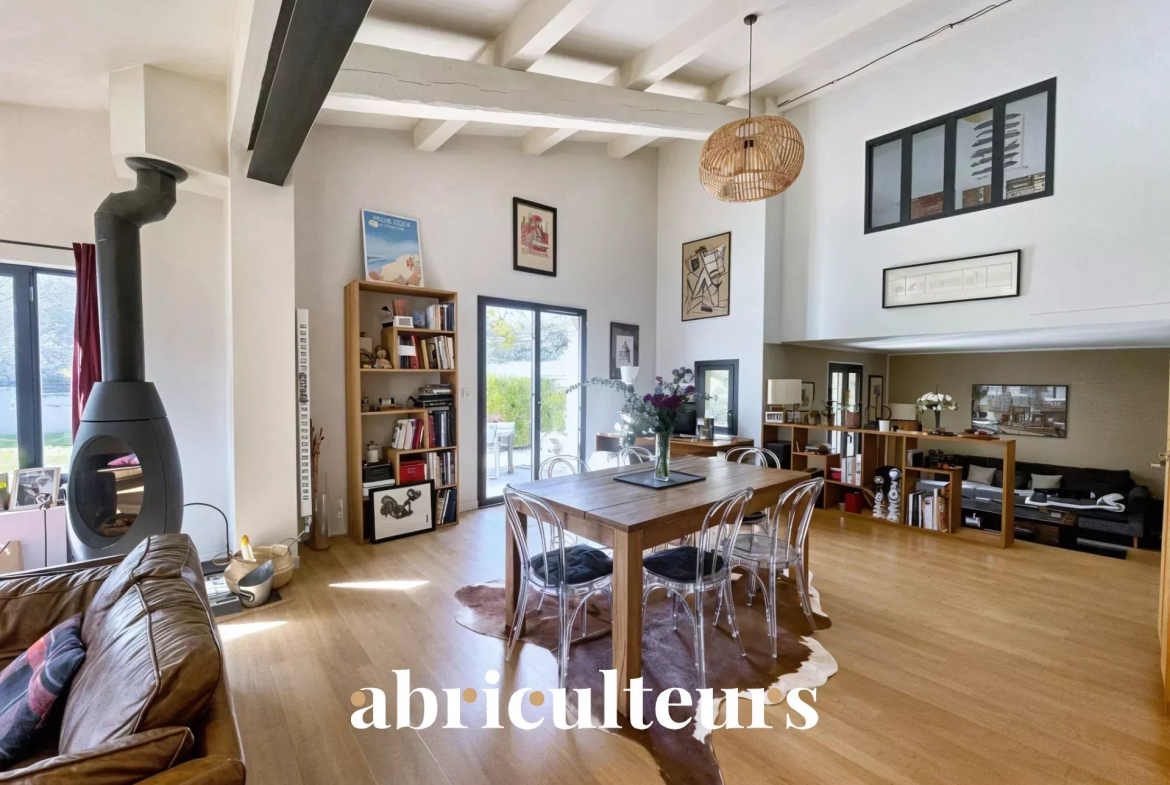 Rénovée avec goût en 2016, la maison principale offre 217 m² de confort et de lumière, répartis sur deux niveaux. Les espaces de vie s’ouvrent sur de belles terrasses arborées : une cuisine équipée à l’américaine, un vaste salon baigné de lumière avec verrière et poêle à bois, une salle à manger sous plafond cathédrale et un salon TV avec cheminée créent une atmosphère conviviale et chaleureuse. Deux suites parentales avec salle de bain au rez-de-chaussée, des toilettes, un bureau et une buanderie complètent ce niveau.