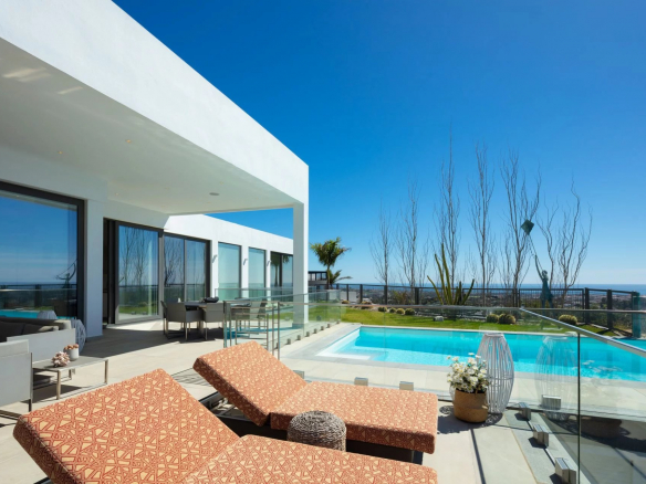 La villa bénéficie d’un cadre magnifique au sommet d’une colline avec une vue panoramique sur la mer à couper le souffle.