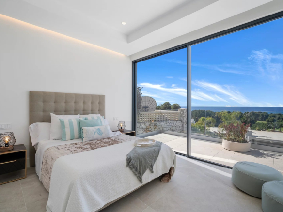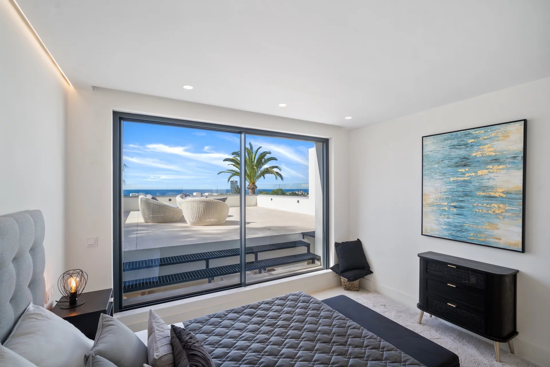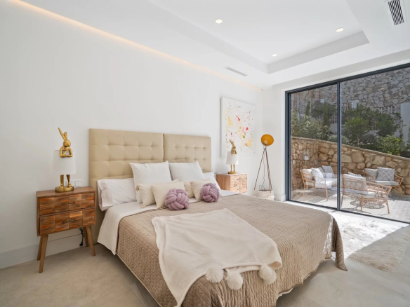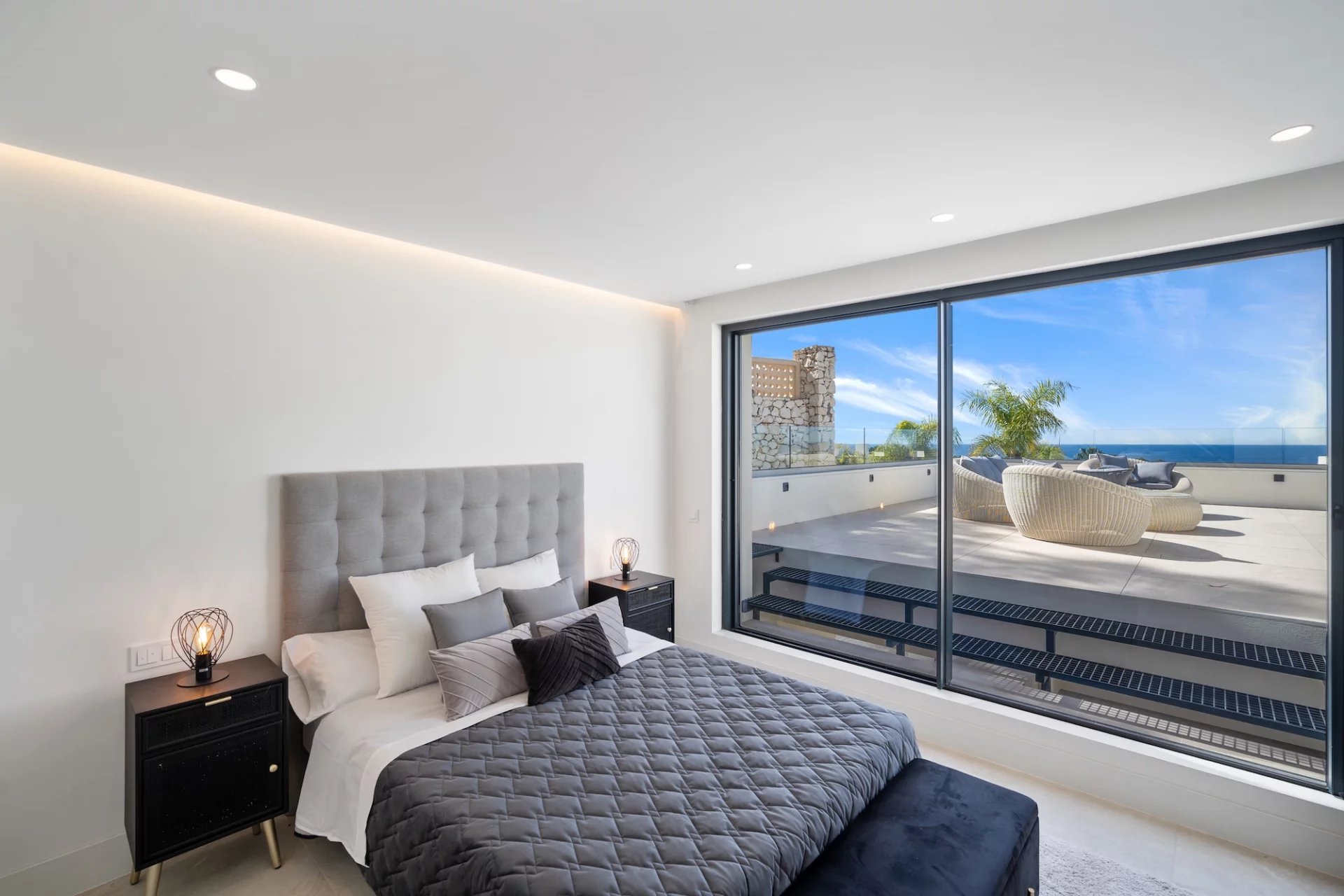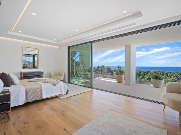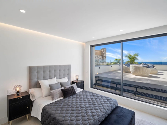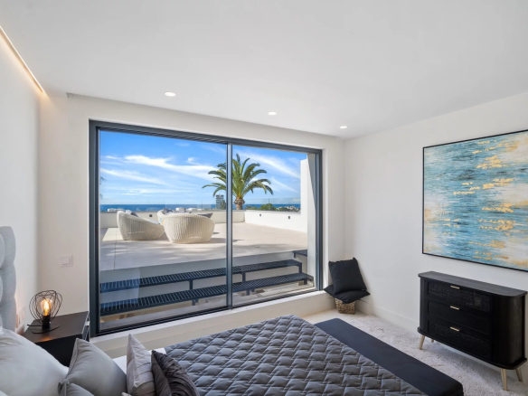 La chambre principale se trouve au niveau supérieur de la propriété, avec un dressing et une grande terrasse enveloppante où vous pourrez profiter d’une vue panoramique à 180 degrés.