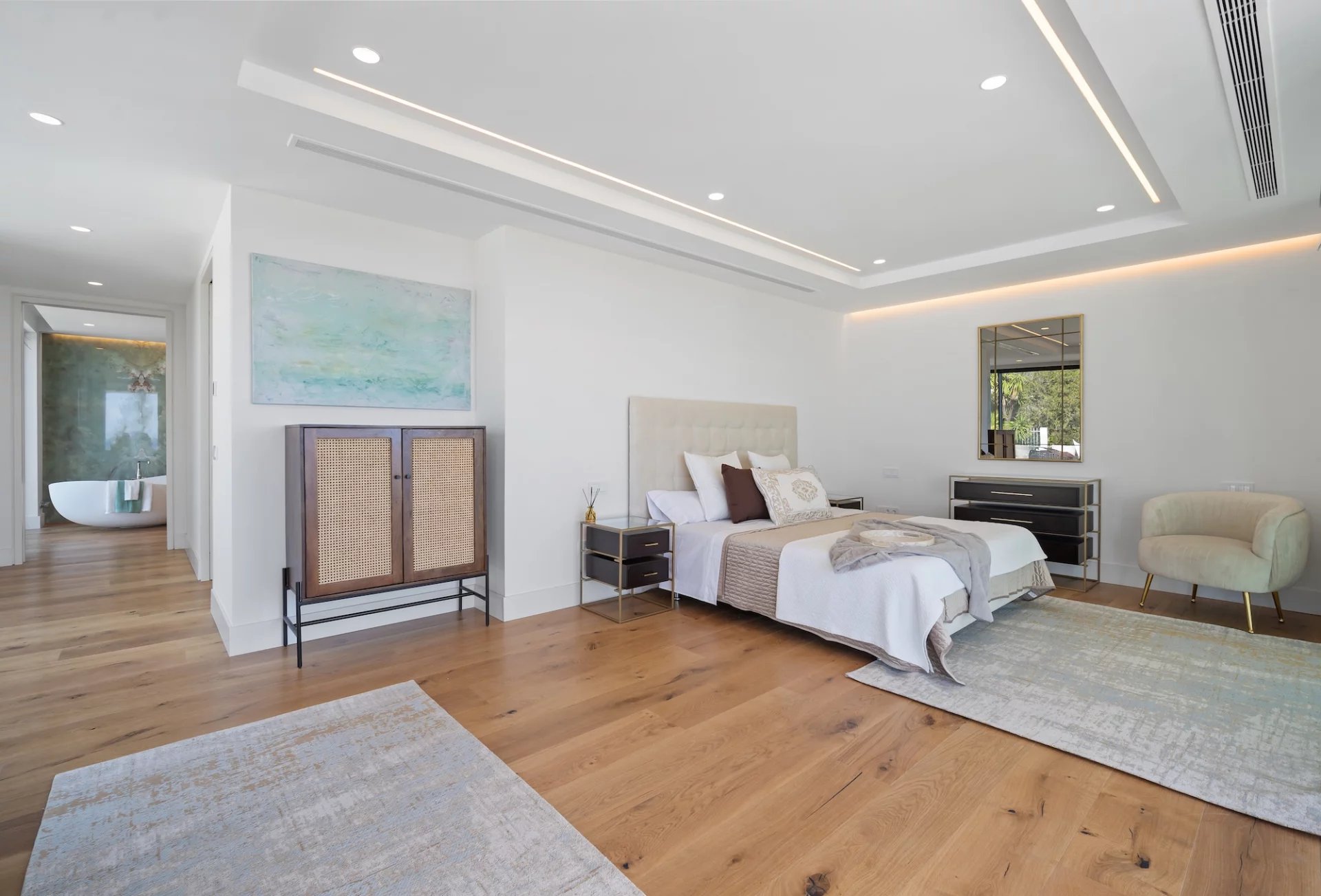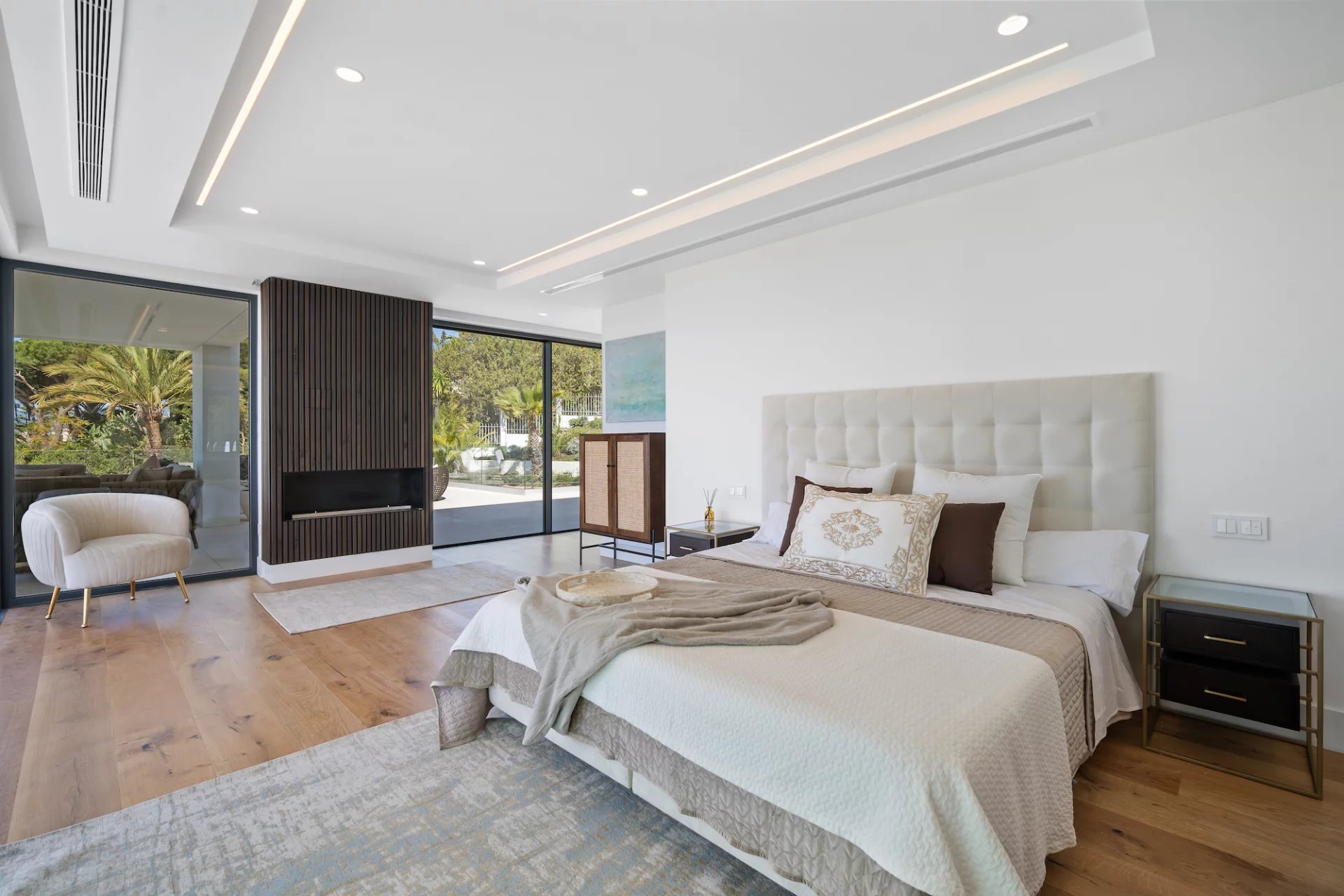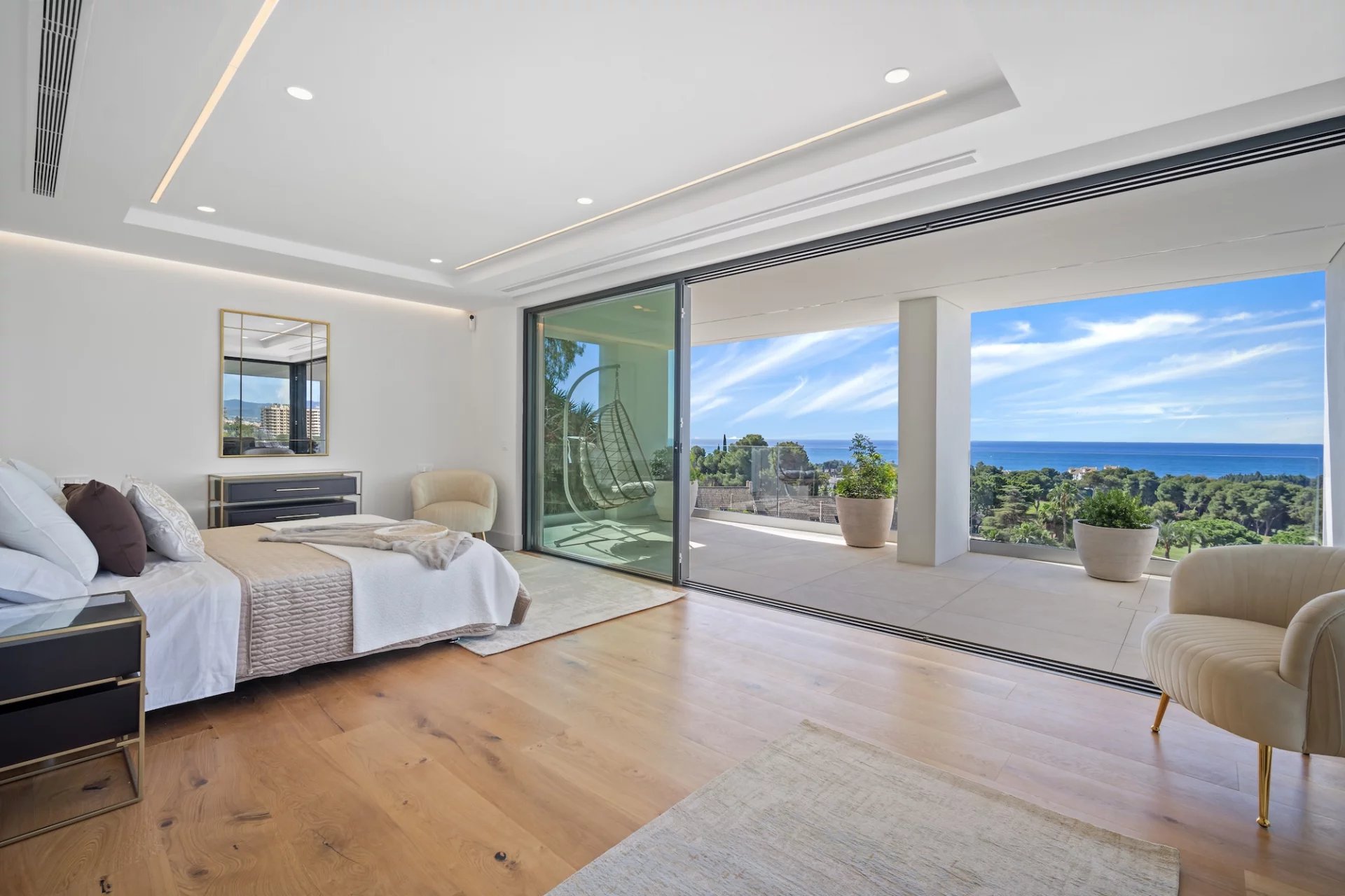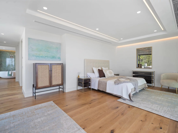 La chambre principale se trouve au niveau supérieur de la propriété, avec un dressing et une grande terrasse enveloppante où vous pourrez profiter d’une vue panoramique à 180 degrés.