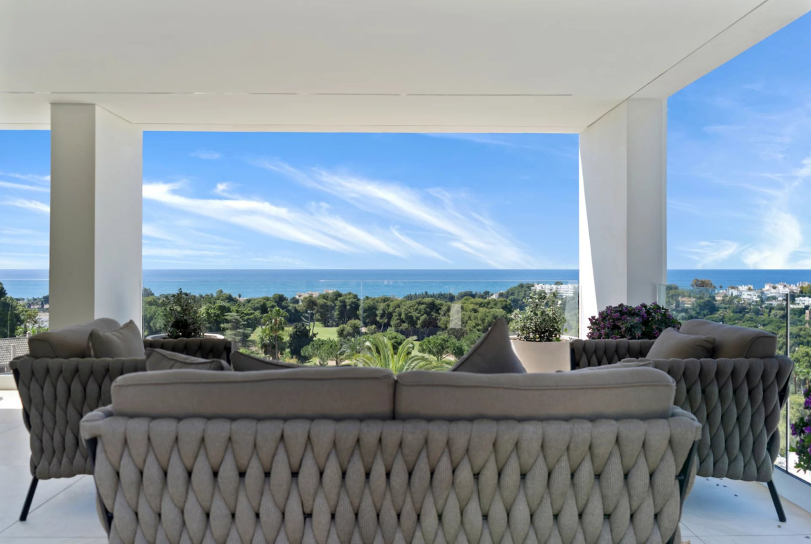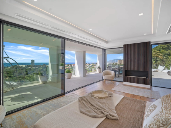 Bienvenue à la Villa , un chef-d’œuvre contemporain à Rio Real offrant les vues panoramiques sur la mer les plus spectaculaires.