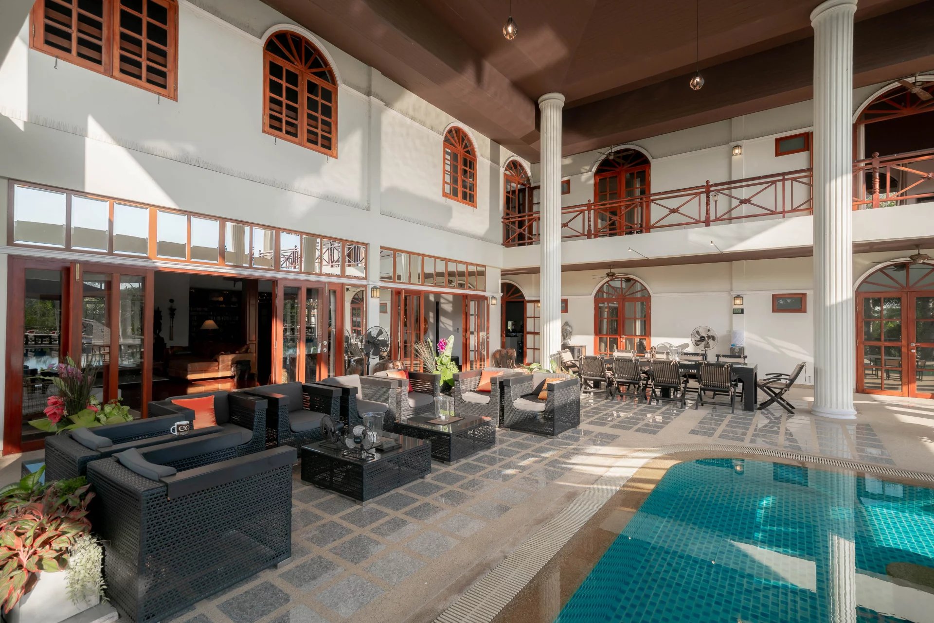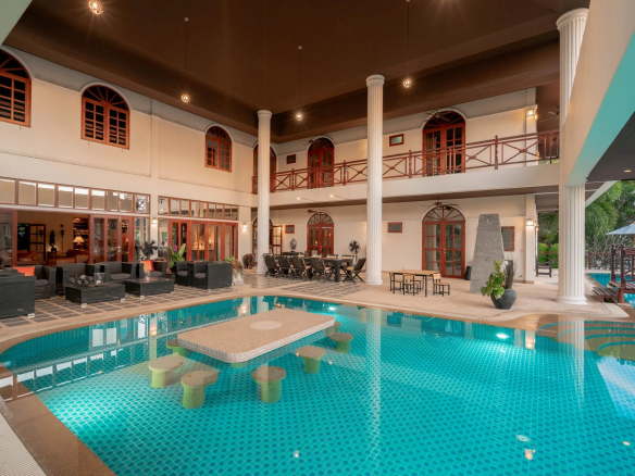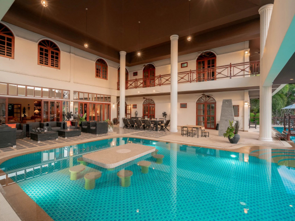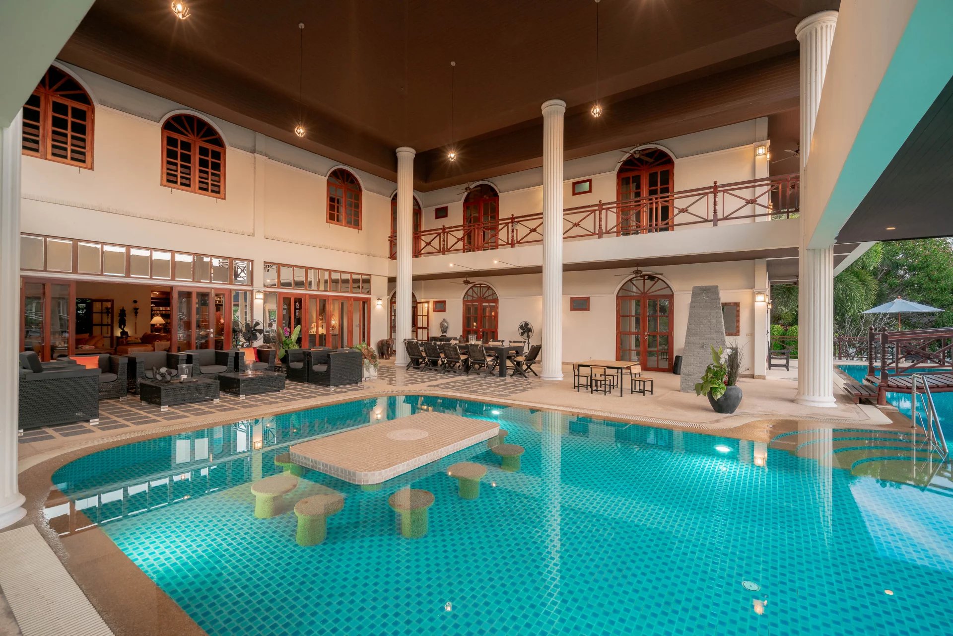 La villa principale dispose de 6 chambres et 6 salles de bains. Salle de jeux avec table de ping-pong