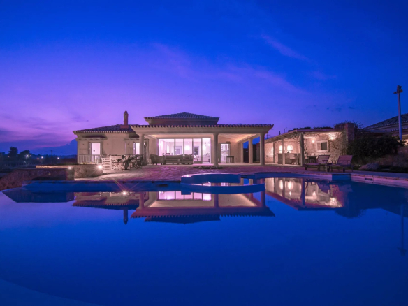 La propriété dispose d’une grande et élégante piscine de 55 m² avec bar de piscine d’ambiance, entourée d’une terrasse spacieuse qui comprend un grand salon extérieur et une pergola ombragée équipée de canapés confortables avec coussins, de chaises longues, de chaises longues associées à une grande table à manger qui prédispose les invités à savourer un délicieux repas ou un cocktail tout en regardant le majestueux coucher de soleil et en écoutant les sons de la mer.