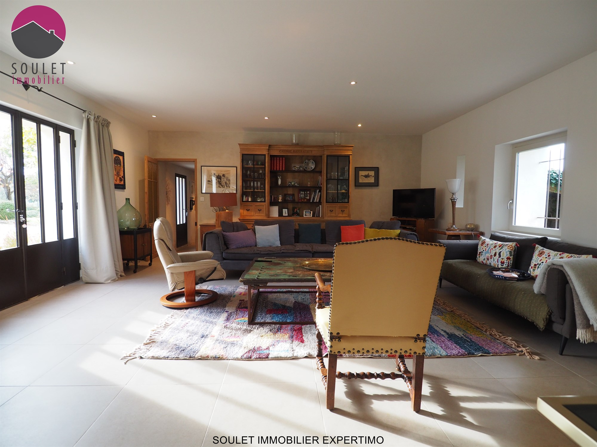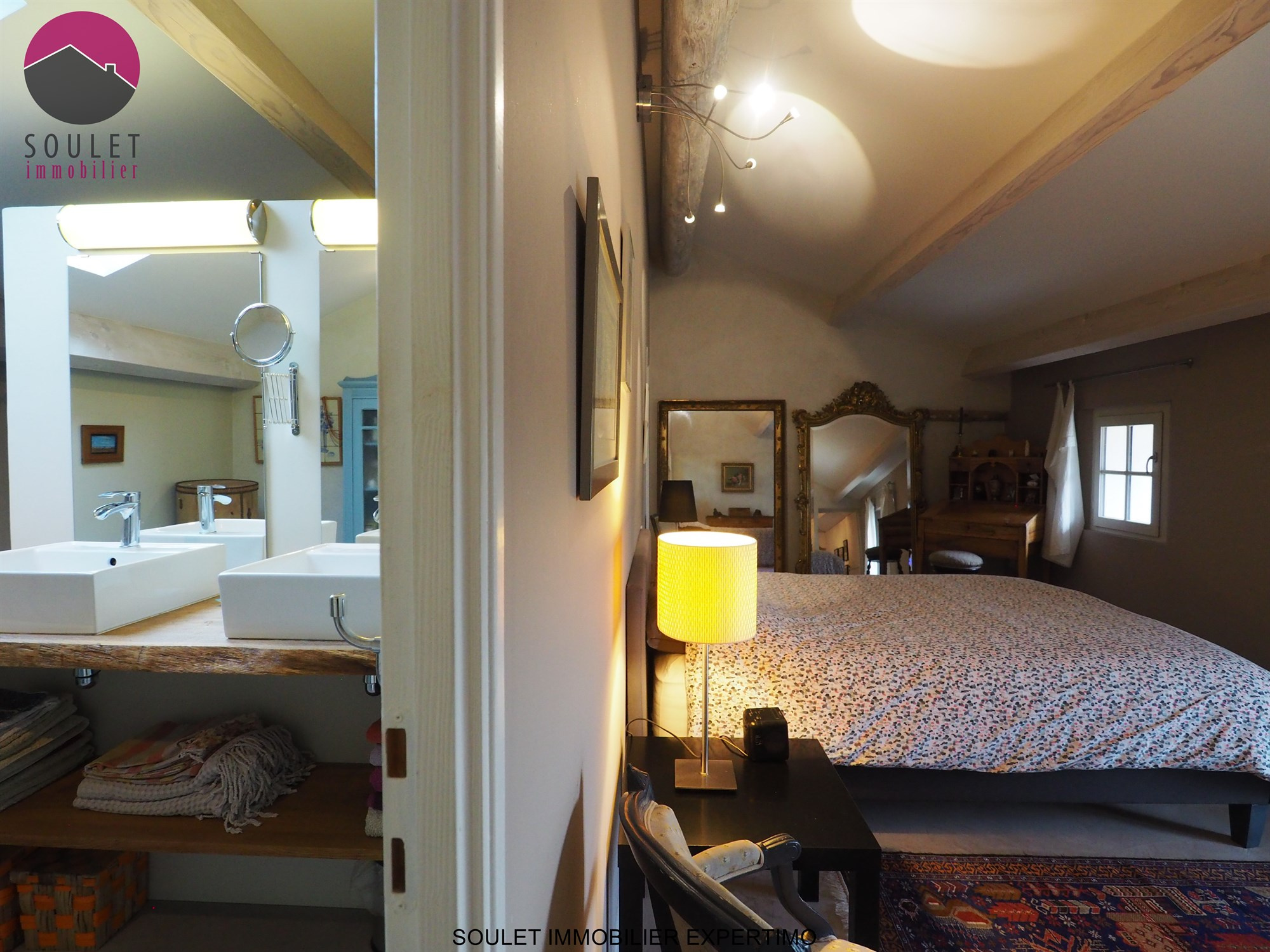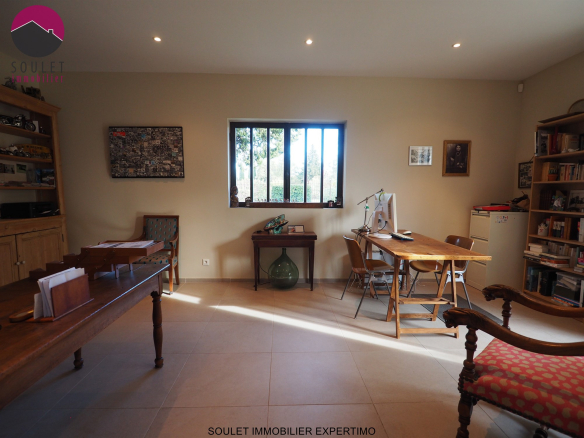 SOULET IMMOBILIER EXPERTIMO présente cette rare et superbe demeure entourée de 3 ha de parc complanté d’essences Provençales et pieds de vignes de table. Un peu plus de 300m2 habitable pour 6 belles suites dont 1 en rez de jardin de 40m2.
