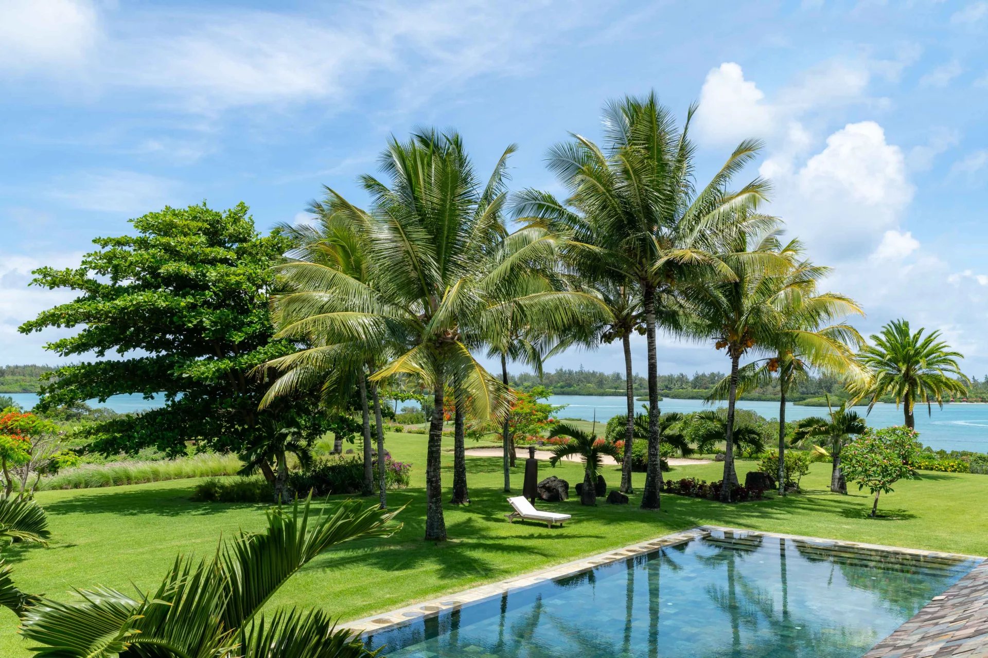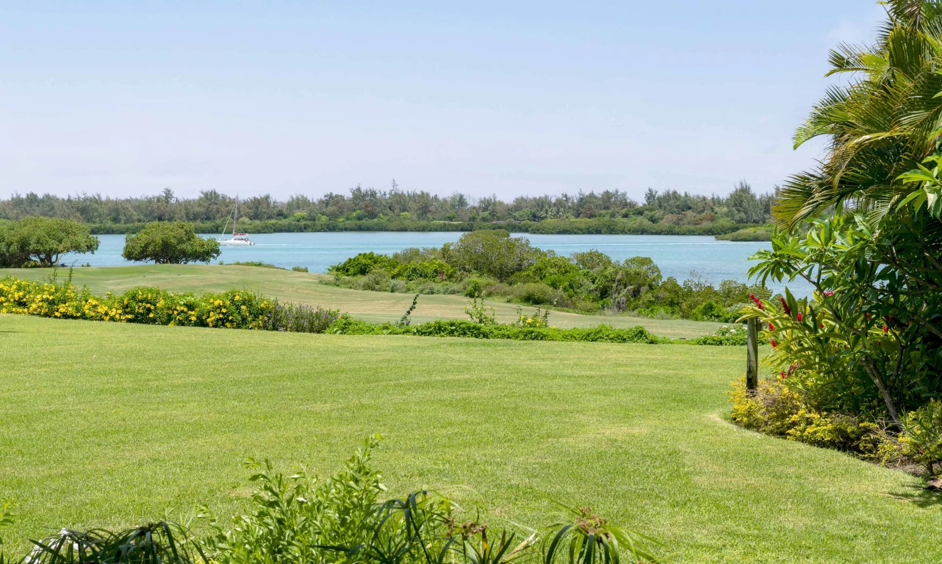 Vue imprenable sur les fairways de golf et le lagon turquoise
