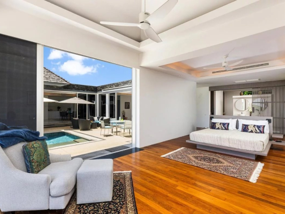 Le niveau inférieur de la villa comprend un espace de vie décloisonné plus informel, qui peut être utilisé comme salle multimédia, et quatre grandes chambres avec salle de bains.
