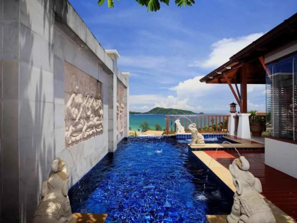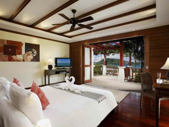La suite principale dispose d’un lit king-size et d’une grande terrasse privée pour admirer la vue imprenable sur la mer d’Andaman et les montagnes luxuriantes.