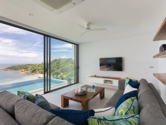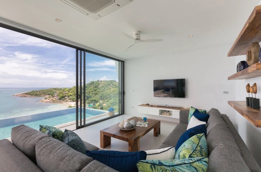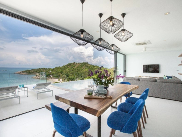 Accès direct privé à la plage de Plai Laem, vue panoramique à 180 ° sur l’océan