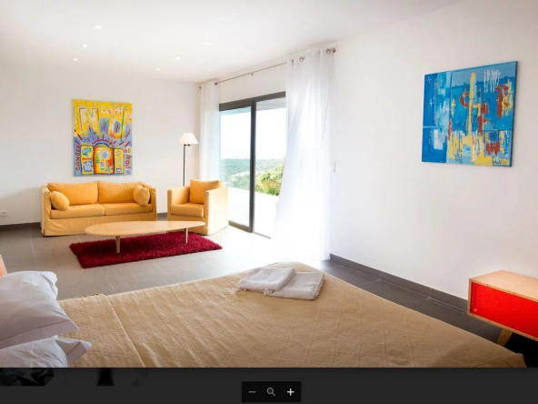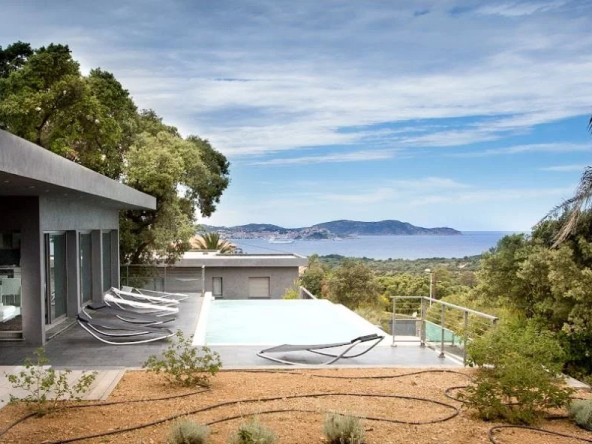 Située dans un quartier prisé de Lumio, proche des belles plages et commerces, superbe villa d’architecte d’une superficie de 289 m² sur un terrain paysager et arboré de près de 2 000 m² avec sa piscine.