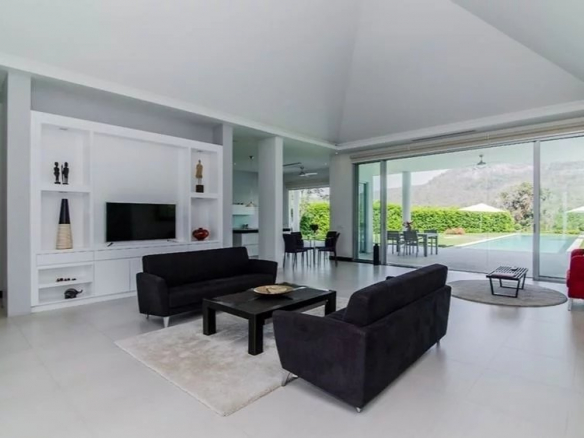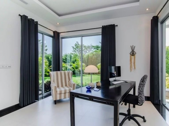 Cette villa contemporaine privée ultime est située dans l’une des communautés les plus recherchées de Hua Hin. Le complexe dispose d’une gestion immobilière cinq étoiles, d’un restaurant, d’un spa, d’un court de tennis et d’une salle de sport. La villa est située dans un cul-de-sac tranquille au sein de la station et possède sa propre allée impressionnante bordée de palmiers. La propriété dispose d’une piscine de 16 mètres de long avec une vue étendue sur les montagnes.