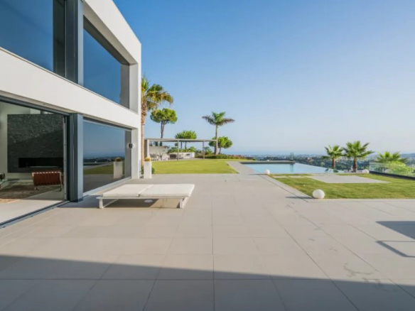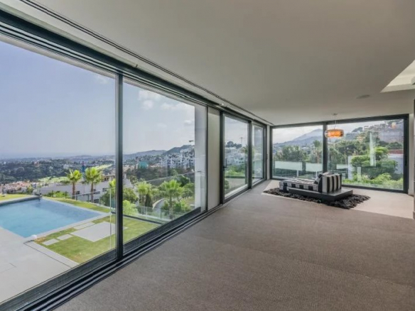 Une toute nouvelle villa de luxe unique en son genre se trouve dans une petite communauté avec des vues panoramiques imbattables sur les collines pittoresques au-dessus San Pedro, à seulement 10 min de Puerto Banús et des plages de renommée mondiale.