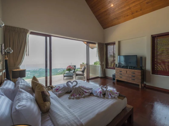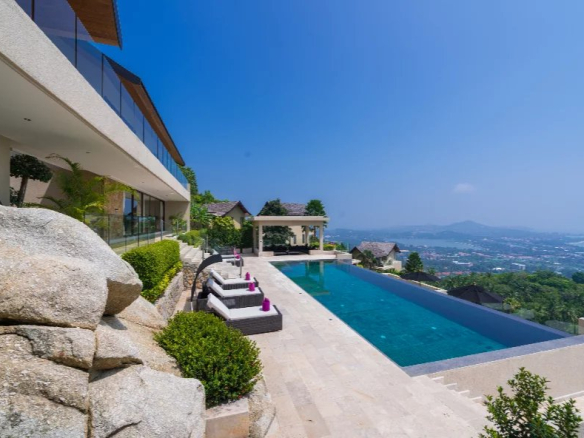 Cette luxueuse villa de 5 chambres offre un niveau de vie inégalé avec une vue panoramique exceptionnelle sur la mer. La villa a été conçue pour créer le style de vie ouvert idéal tout en maintenant un haut niveau d’intimité. Les 5 chambres sont dotées d’une salle de bains privative et ont été aménagées avec des téléviseurs LCD, des lits king-size de luxe, la climatisation, un coffre-fort et des ornements et des œuvres d’art thaïlandais chics. Offrant un grand salon / salle à manger, une cuisine entièrement équipée, une grande salle extérieure couverte et des terrasses, des espaces de détente décloisonnés, une grande piscine à débordement et un bar. Aucune dépense n’a été épargnée dans la conception, la construction et l’ameublement de cette villa. Cette superbe propriété offre une vue imprenable et sans doute la meilleure du genre à Koh Samui.