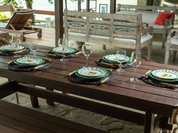 Sur l’île, il n’y a pas de marchés ou de petites ventes, il faut faire les courses et approvisionner la maison à Angra dos Reis. Il y a quelques restaurants et bars, auxquels on peut accéder par la mer ou en se promenant sur des sentiers agréables, mais, à notre avis, aucun d’entre eux ne se rapproche de la cuisine qui est pratiquée dans la Casa Gipoia