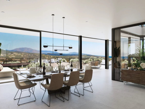 De grandes baies vitrées inondent la villa de soleil et offrent une vue imprenable sur le paysage environnant. Une belle piscine extérieure est la pièce maîtresse des jardins environnants.