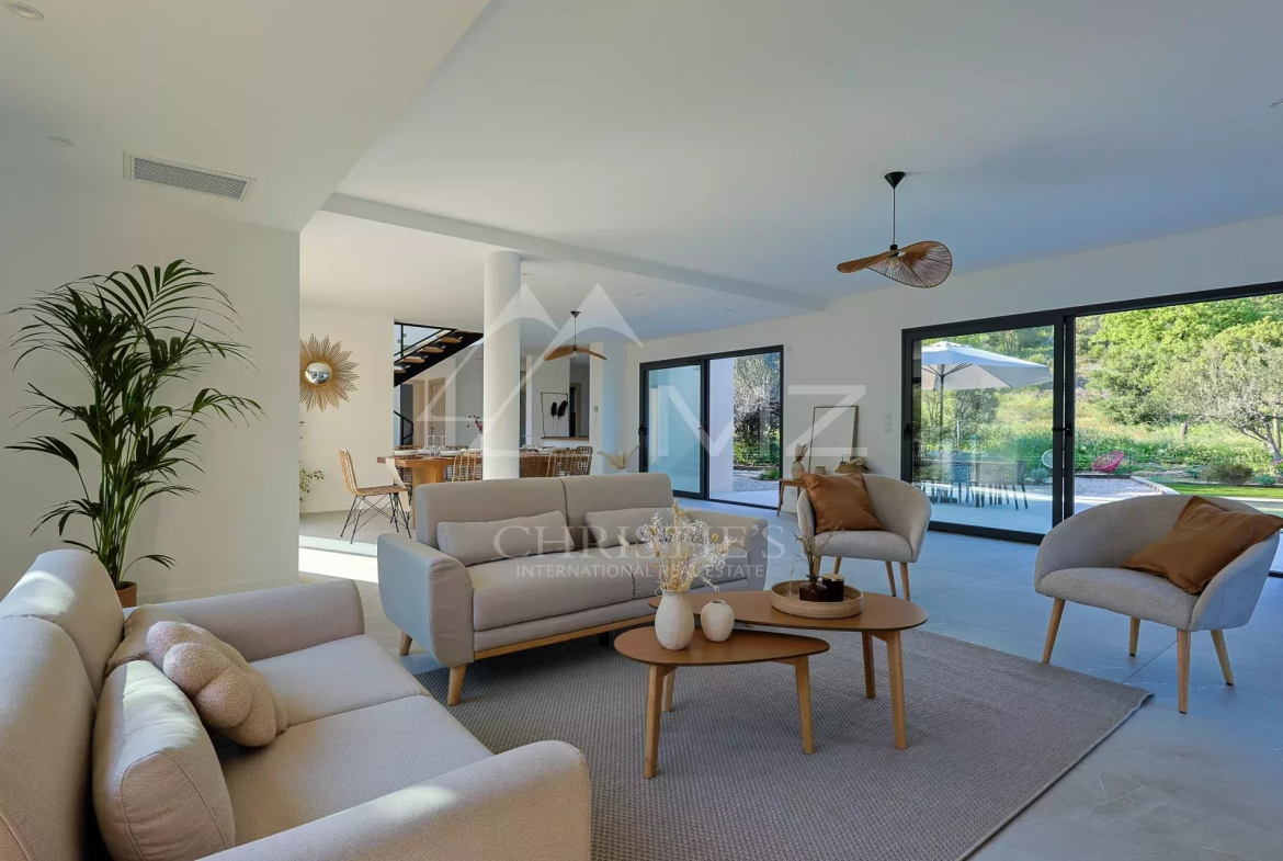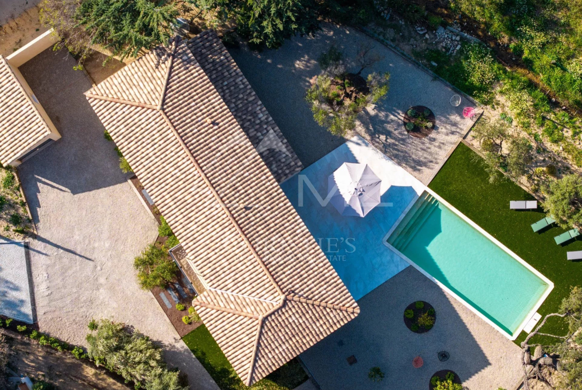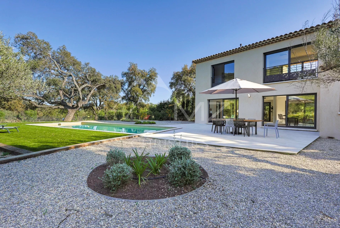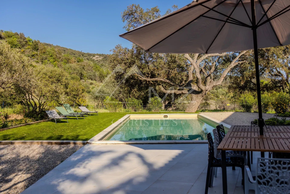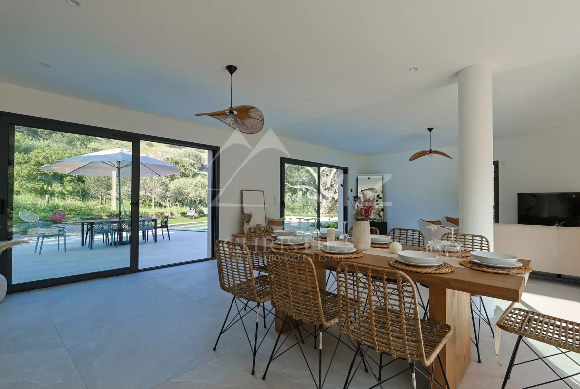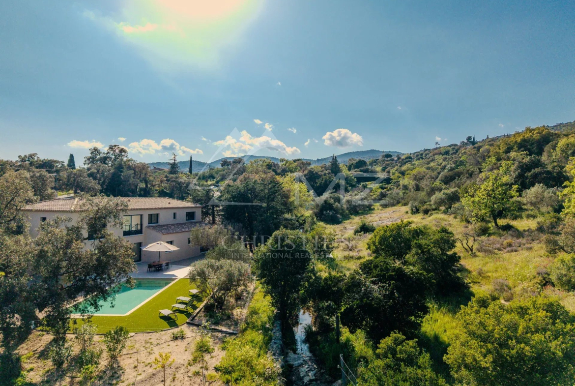 Cette magnifique villa neuve est située au cœur du massif des Maures, offrant ainsi la tranquillité de la campagne provençale tout en étant à moins de 15 minutes des plages.