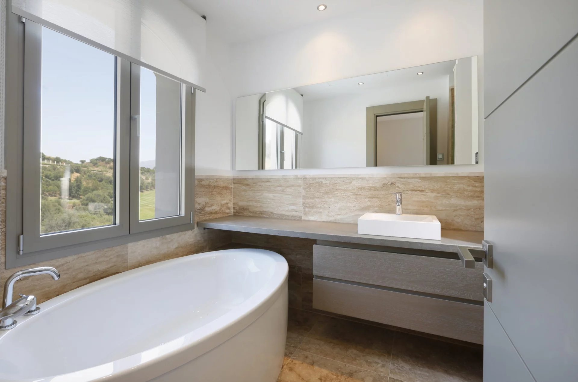 La deuxième chambre d’amis est à l’arrière de la propriété, également avec vue dégagée, une terrasse privée et dispose également de placards et d’une salle de bain.