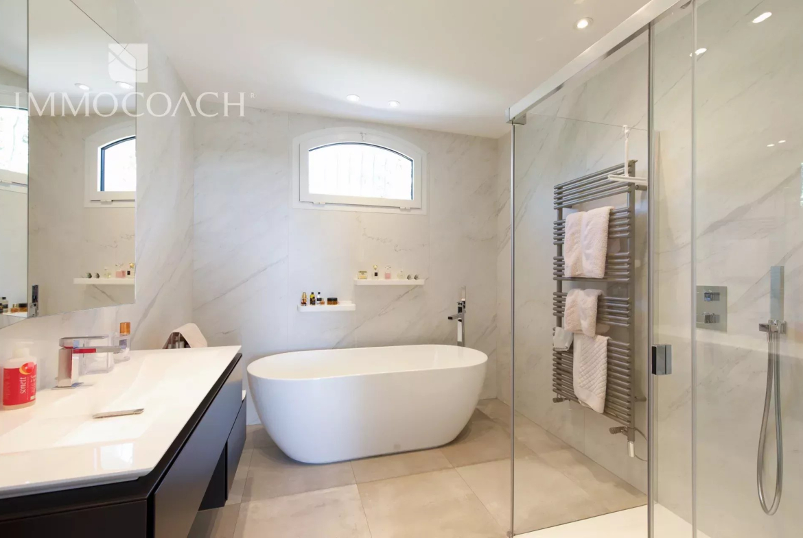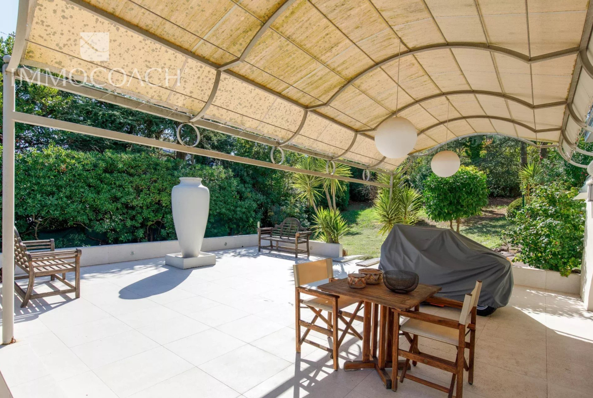 La villa entièrement rénovée avec des prestations haut de gamme et des matériaux de grande qualité, développe environ 300M² habitables sur 2500M² de terrain plat arboré de massifs, arbustes et arbres se situe dans un environnement de charme.