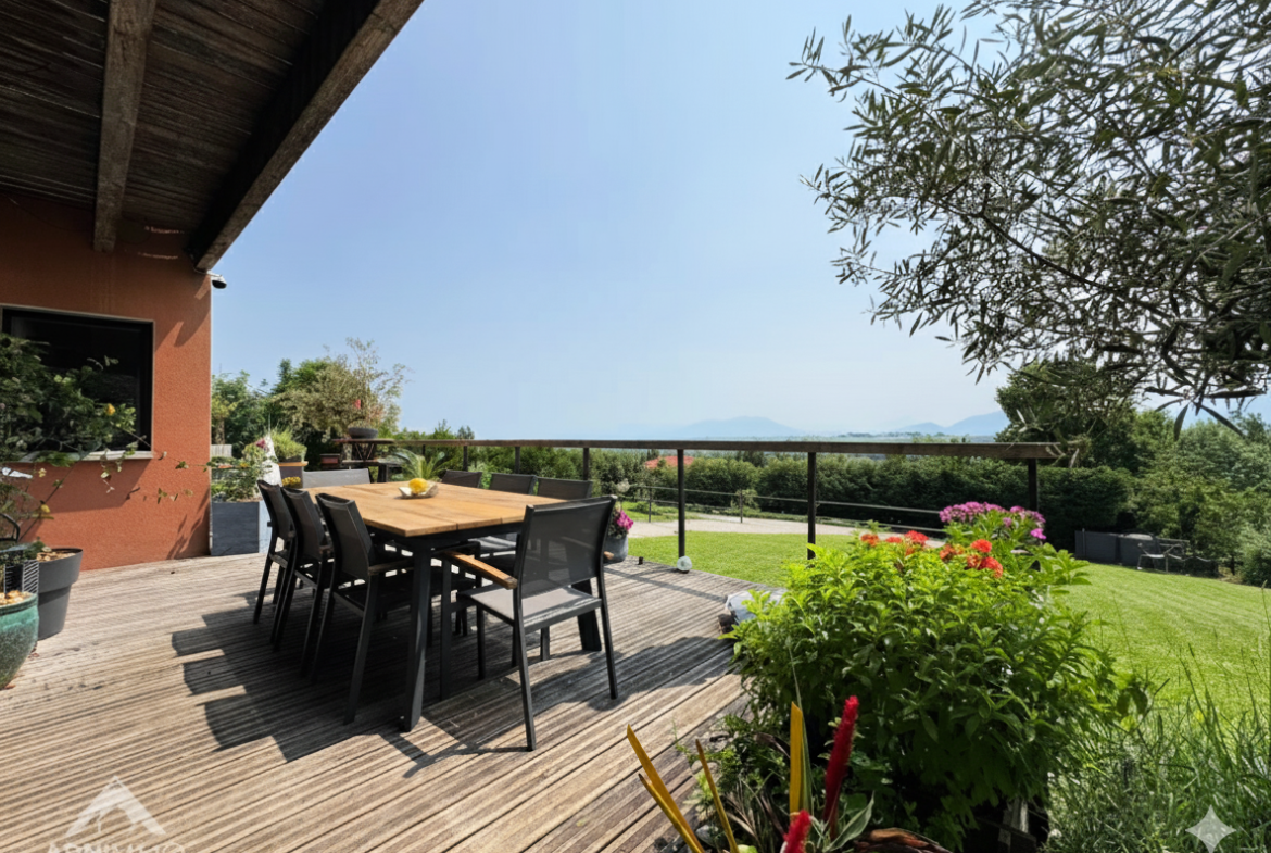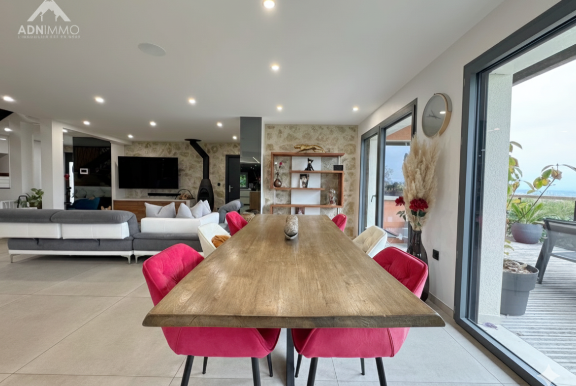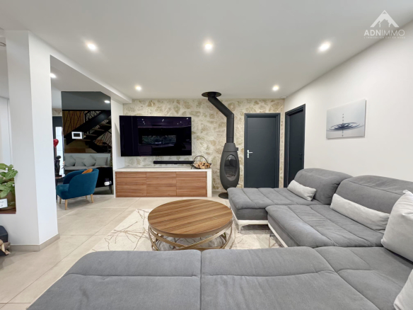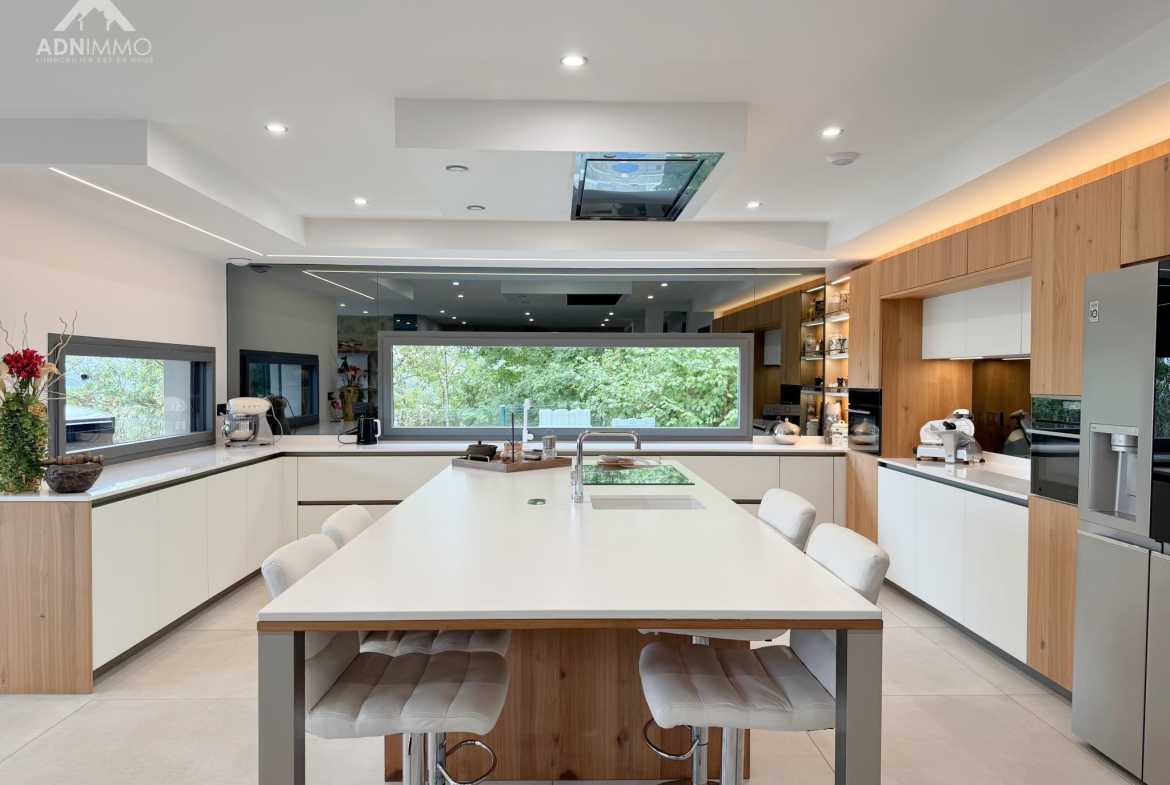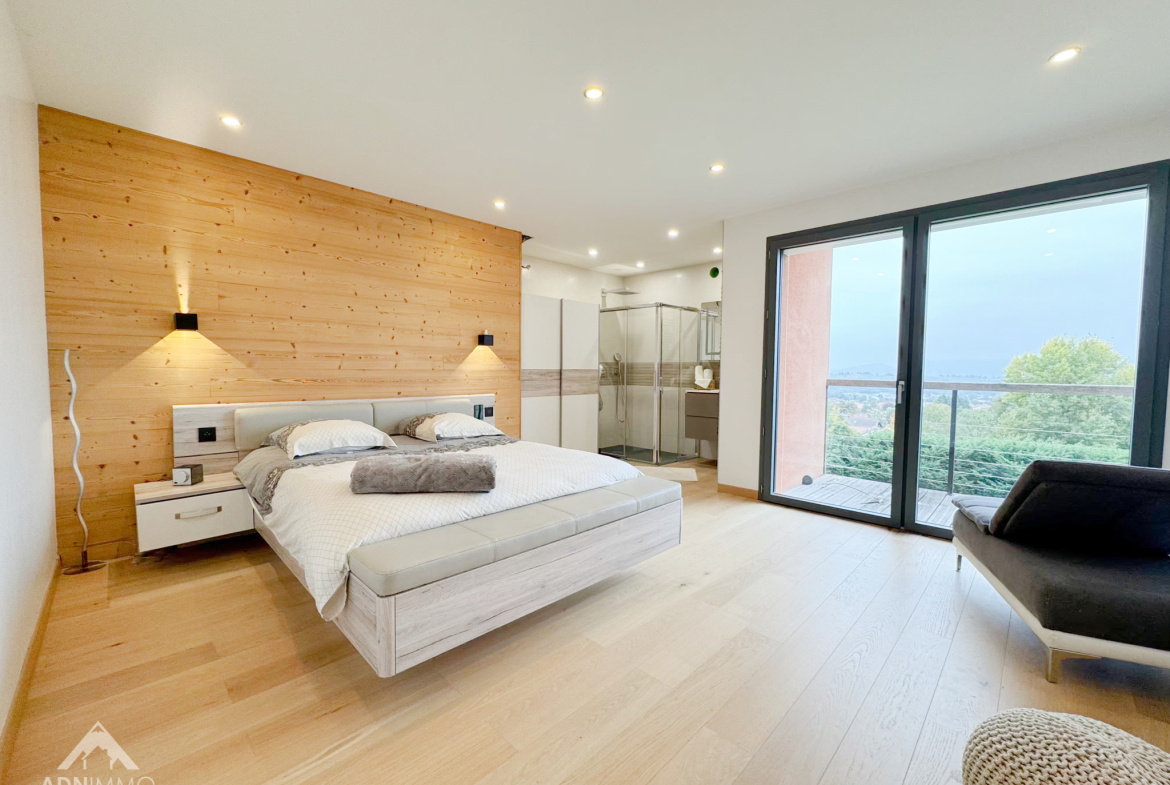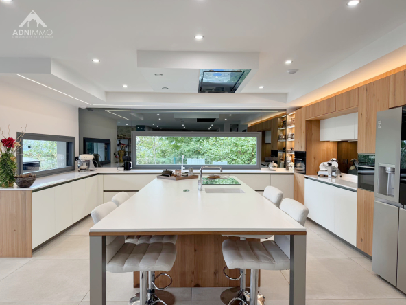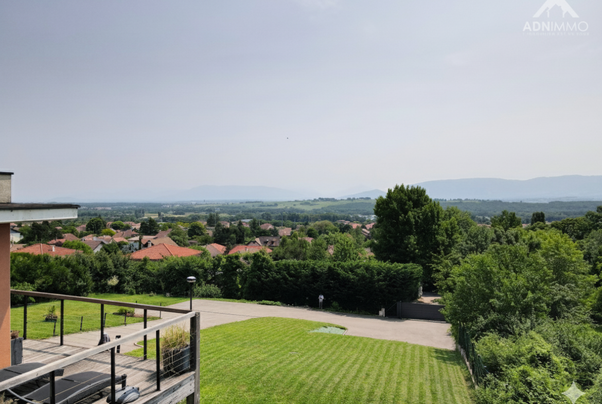 L’agence ADN Immo vous propose en exclusivité cette superbe propriété de 375 m2 sur la commune de Thoiry. Construite sur une parcelle de 1419m2, elle comprend un vaste espace de vie lumineux incluant une cuisine ouverte intégralement équipée, 6 chambres spacieuses dont 5 suites, 1 bureau, 1 salle de bain, 5 salles de douche et WC. En complément, salle de sport, salle de jeu, espace spa avec douches et vestiaire, garages et plusieurs terrasses exposées plein sud offrant une vue imprenable sur les Alpes et le Mont Blanc.