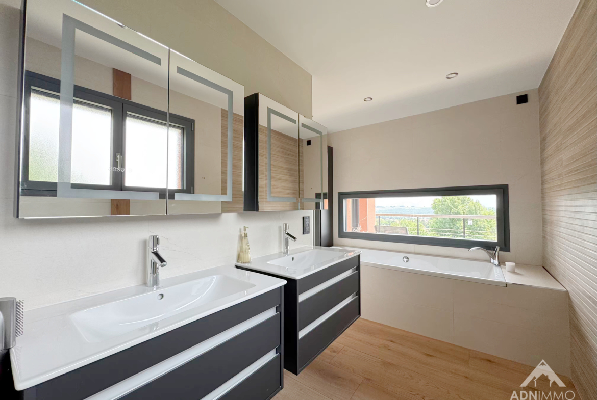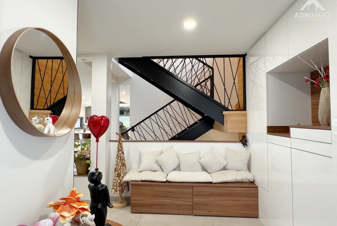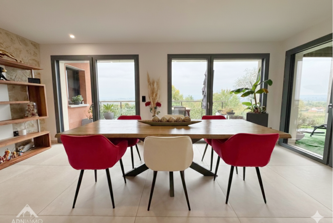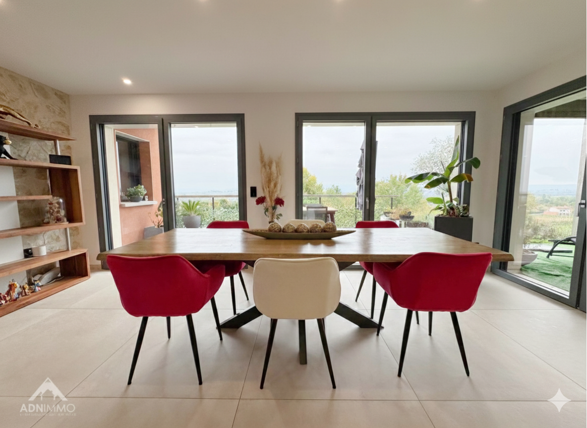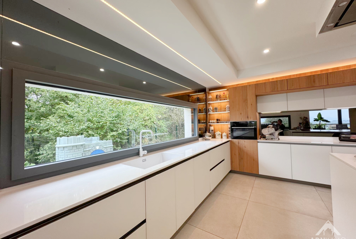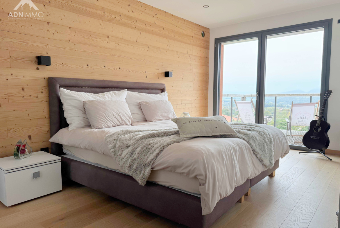 L’agence ADN Immo vous propose en exclusivité cette superbe propriété de 375 m2 sur la commune de Thoiry. Construite sur une parcelle de 1419m2, elle comprend un vaste espace de vie lumineux incluant une cuisine ouverte intégralement équipée, 6 chambres spacieuses dont 5 suites, 1 bureau, 1 salle de bain, 5 salles de douche et WC. En complément, salle de sport, salle de jeu, espace spa avec douches et vestiaire, garages et plusieurs terrasses exposées plein sud offrant une vue imprenable sur les Alpes et le Mont Blanc.