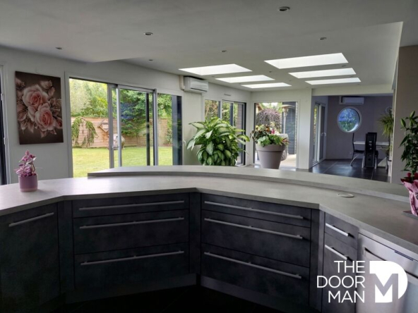 Grande pièce de vie lumineuse, baignée de lumière naturelle,