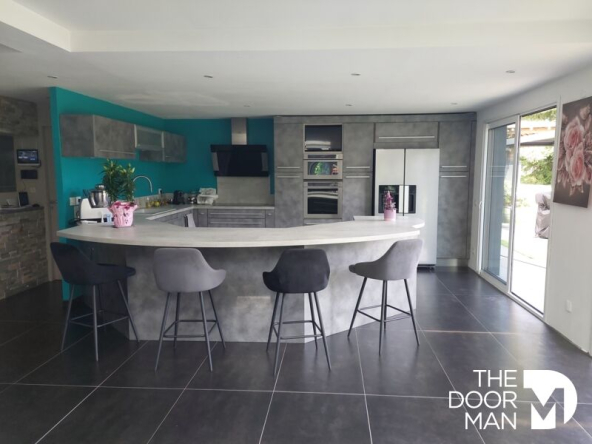 Cuisine ouverte entièrement équipée, moderne et conviviale,