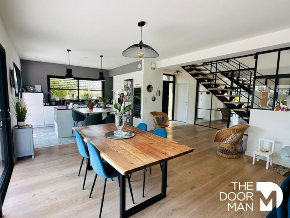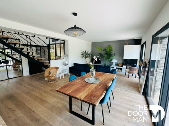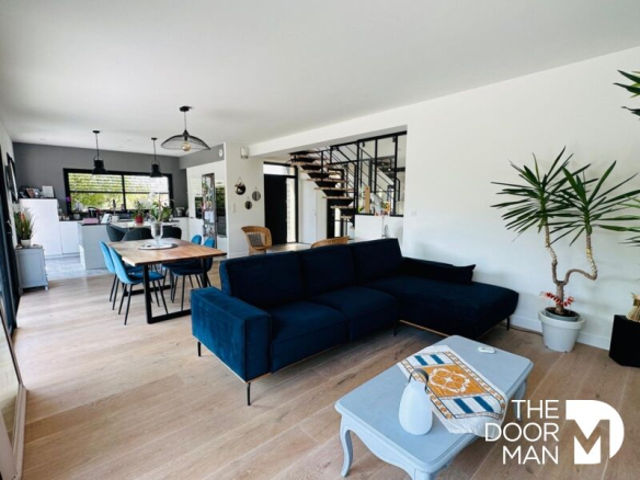 Dès l’entrée, cette demeure séduit par la qualité de ses prestations, ses volumes généreux et sa luminosité remarquable. Le rez-de-chaussée s’ouvre sur un vaste espace de réception baigné de lumière, composé d’un salon-séjour aux lignes épurées, prolongé par une cuisine contemporaine parfaitement aménagée et équipée. Une suite parentale raffinée avec salle d’eau privative ainsi qu’une buanderie viennent compléter ce niveau avec élégance et fonctionnalité.