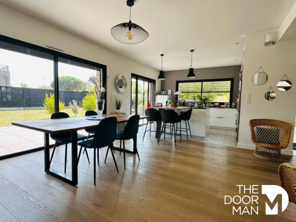 The Door Man vous présente cette élégante propriété contemporaine construite en 2019, idéalement située à seulement 500 mètres de la plage du Minihic, au c?ur du très prisé quartier de Rothéneuf à Saint-Malo.