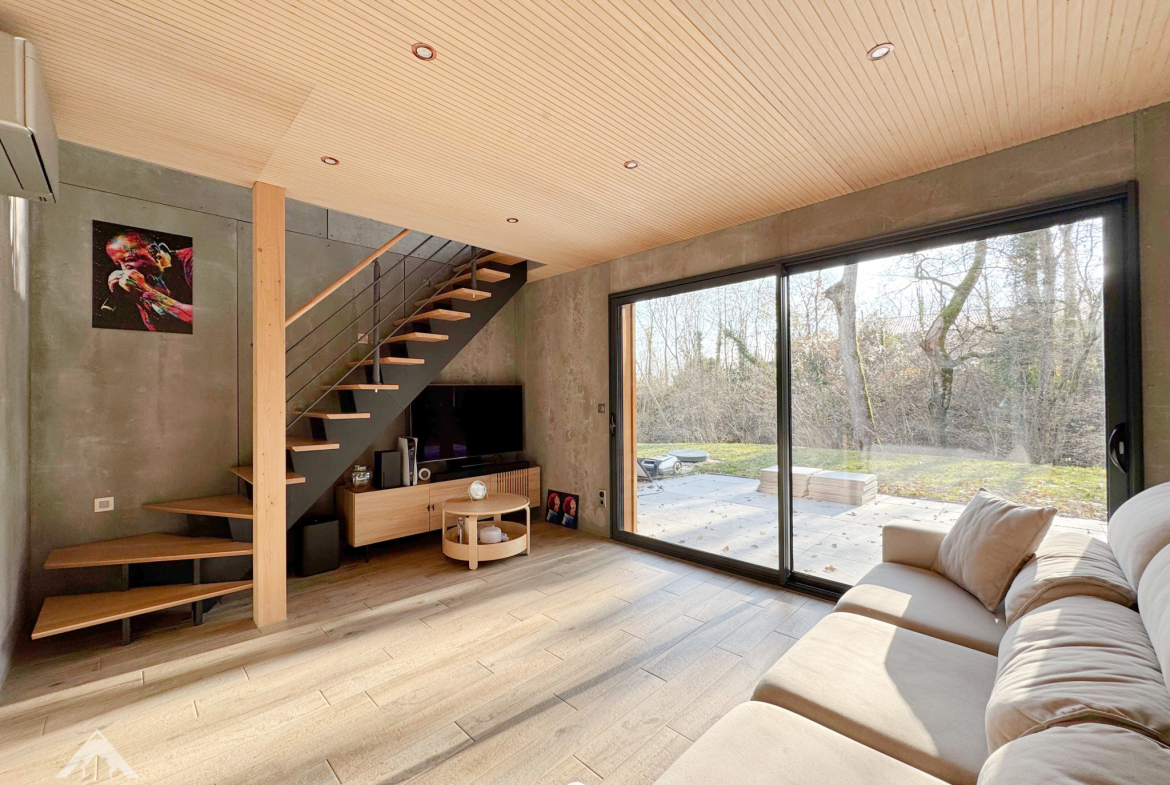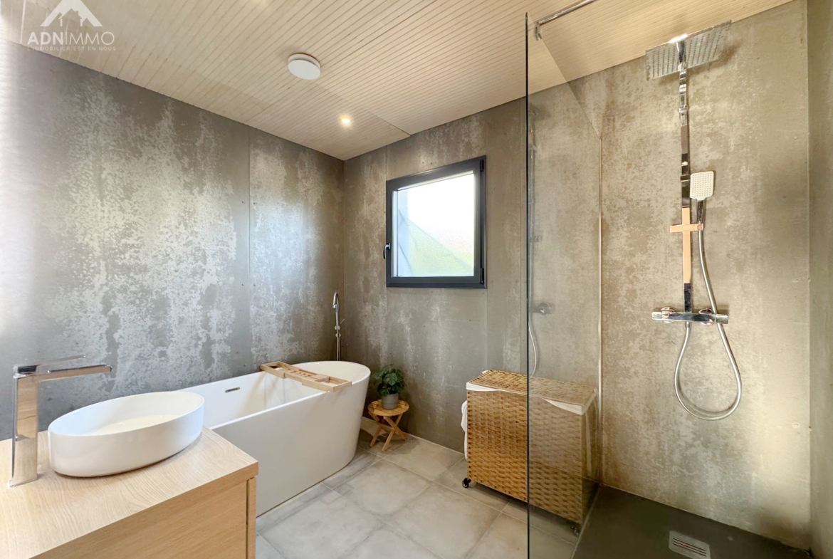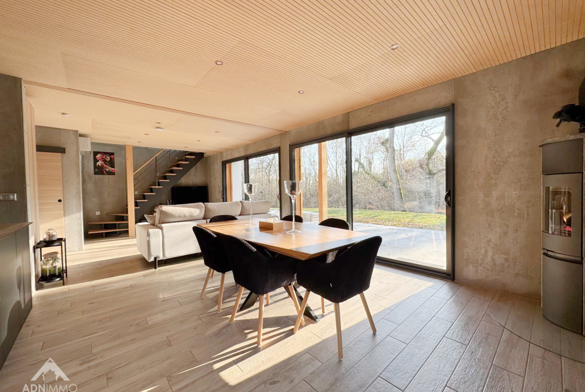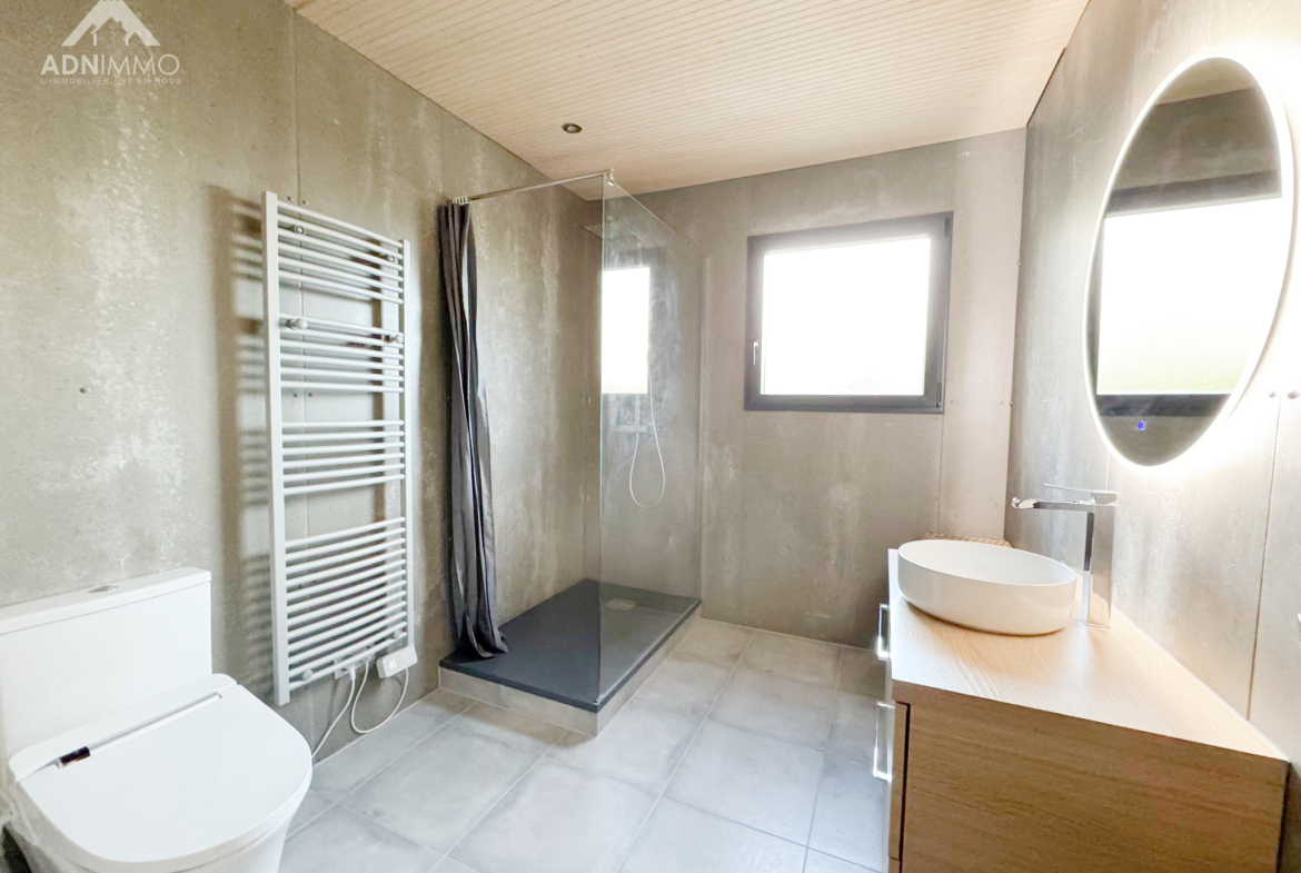 L’agence ADN Immo vous propose en exclusivité cette magnifique maison individuelle sur la commune de Péron. Construite sur une parcelle de 1300 m2, elle comprend un vaste espace de vie lumineux incluant une cuisine ouverte intégralement équipée, 3 chambres spacieuses dont une suite parentale, un espace mezzanine / bureau, 1 salle de bain, 1 salle de douche et 2 WC. En complément, une grande terrasse exposée plein sud et un abri voiture double.