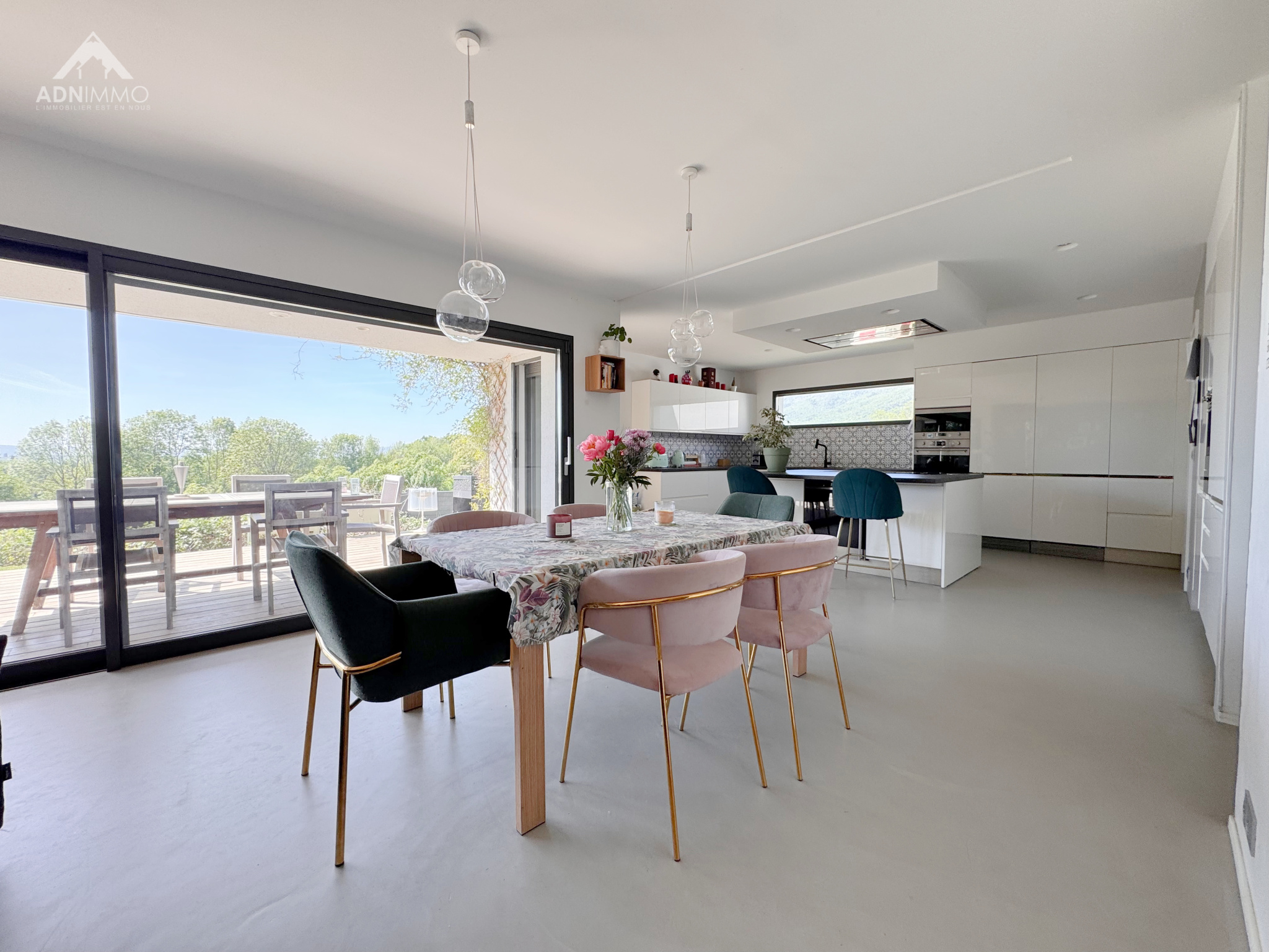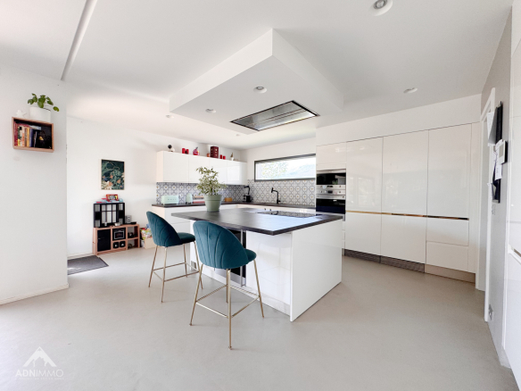 Dès l’entrée, vous serez séduit par un vaste espace de vie baigné de lumière, offrant de superbes volumes et une atmosphère chaleureuse. La cuisine ouverte, entièrement équipée avec des matériaux de qualité, s’intègre parfaitement à cet espace convivial, idéal pour recevoir.