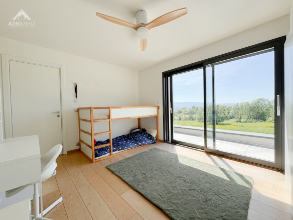 Chaque pièce de la maison offre une vue dégagée imprenable sur le Jura ou les Alpes, apportant une sensation d’espace et de sérénité au quotidien. Grâce à ses larges ouvertures, la maison est particulièrement lumineuse tout au long de la journée.