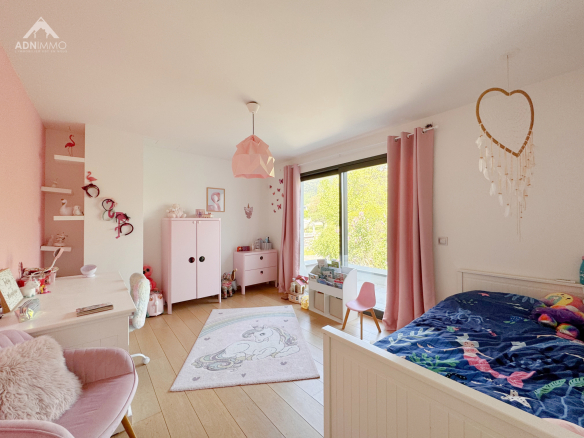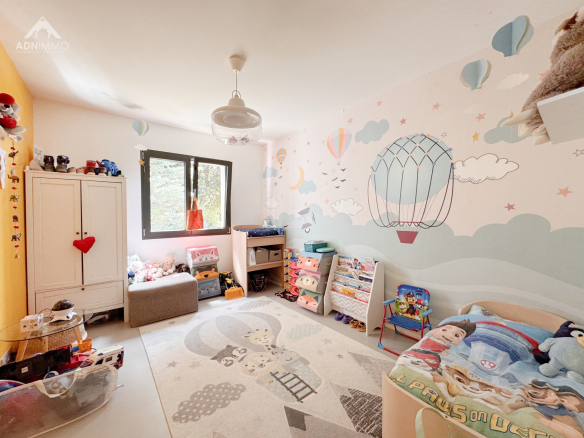 La maison dispose de 4 chambres spacieuses, dont une élégante suite parentale. Trois des chambres bénéficient d’un accès à un balcon, permettant de profiter pleinement d’un environnement exceptionnel. Vous trouverez également une salle de bain ainsi que deux salles de douche, alliant confort et fonctionnalité pour toute la famille.