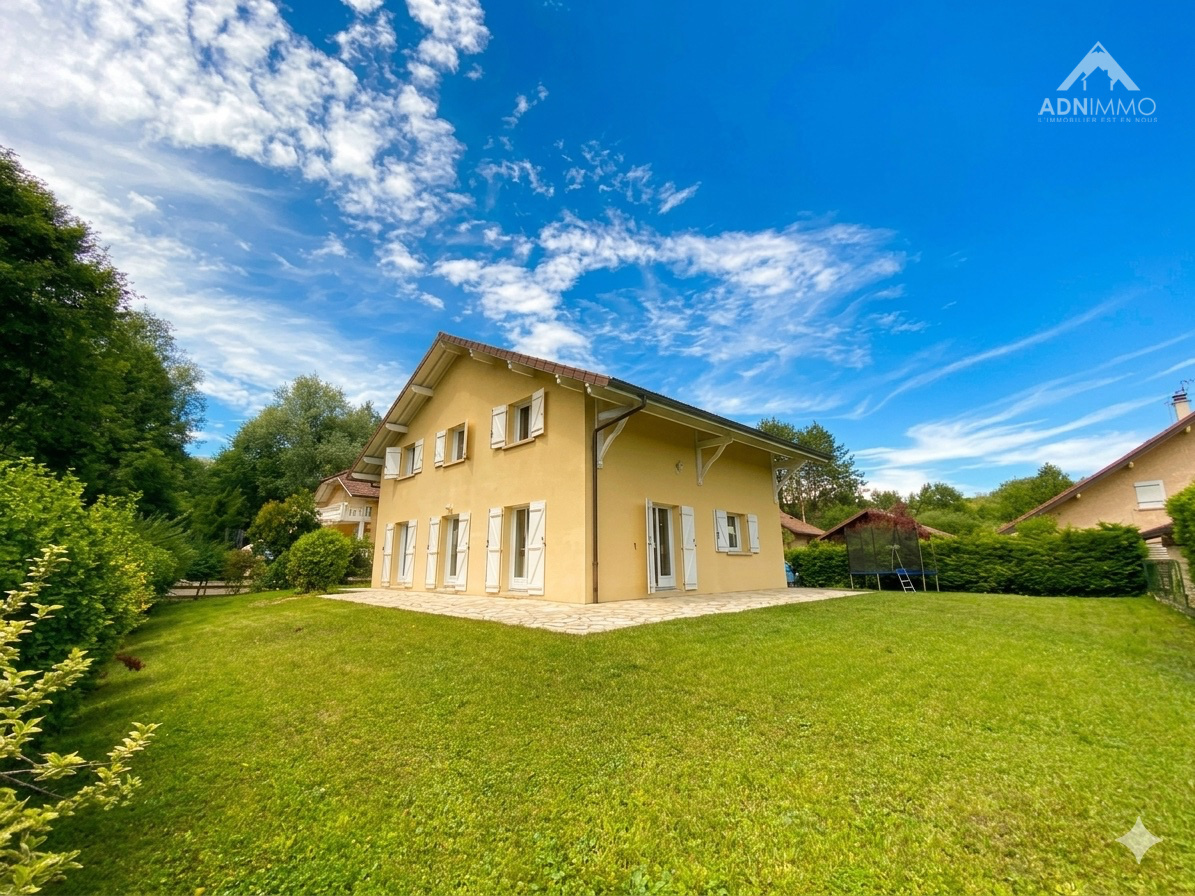 L’agence ADN Immo vous propose en exclusivité cette très jolie maison individuelle de 180m2 sur la commune de Saint-Genis-Pouilly. Construite sur une parcelle d’environ 750m2 , elle comprend un vaste espace de vie lumineux incluant une cuisine ouverte intégralement équipée, 4 chambres spacieuses, 1 bureau, 1 salle de bain, 1 salle de douche et 2 WC. En complément, une grande terrasse exposée plein sud et un double garage avec mezzanine.