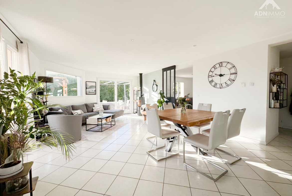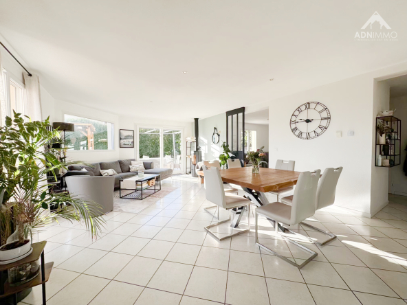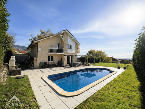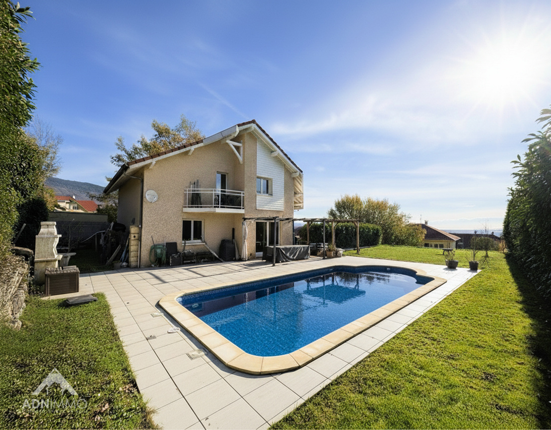 L’agence ADN Immo vous propose cette très jolie maison individuelle de 152 m2 sur la commune de Collonges. Construite sur une parcelle de 820m2, elle comprend un vaste espace de vie lumineux incluant une cuisine ouverte intégralement équipée, 4 chambres spacieuses dont une suite parentale, un espace bureau, 1 salle de bain, 1 salle de douche et 3 WC. En complément, une grande terrasse exposée plein sud avec piscine et vue dégagée sur le Salève et un sous sol complet de 80 m2 avec triple garage.