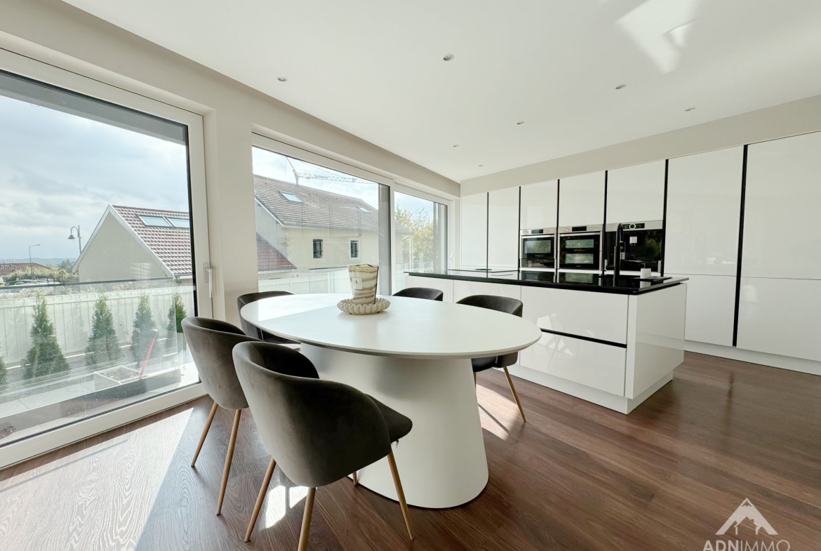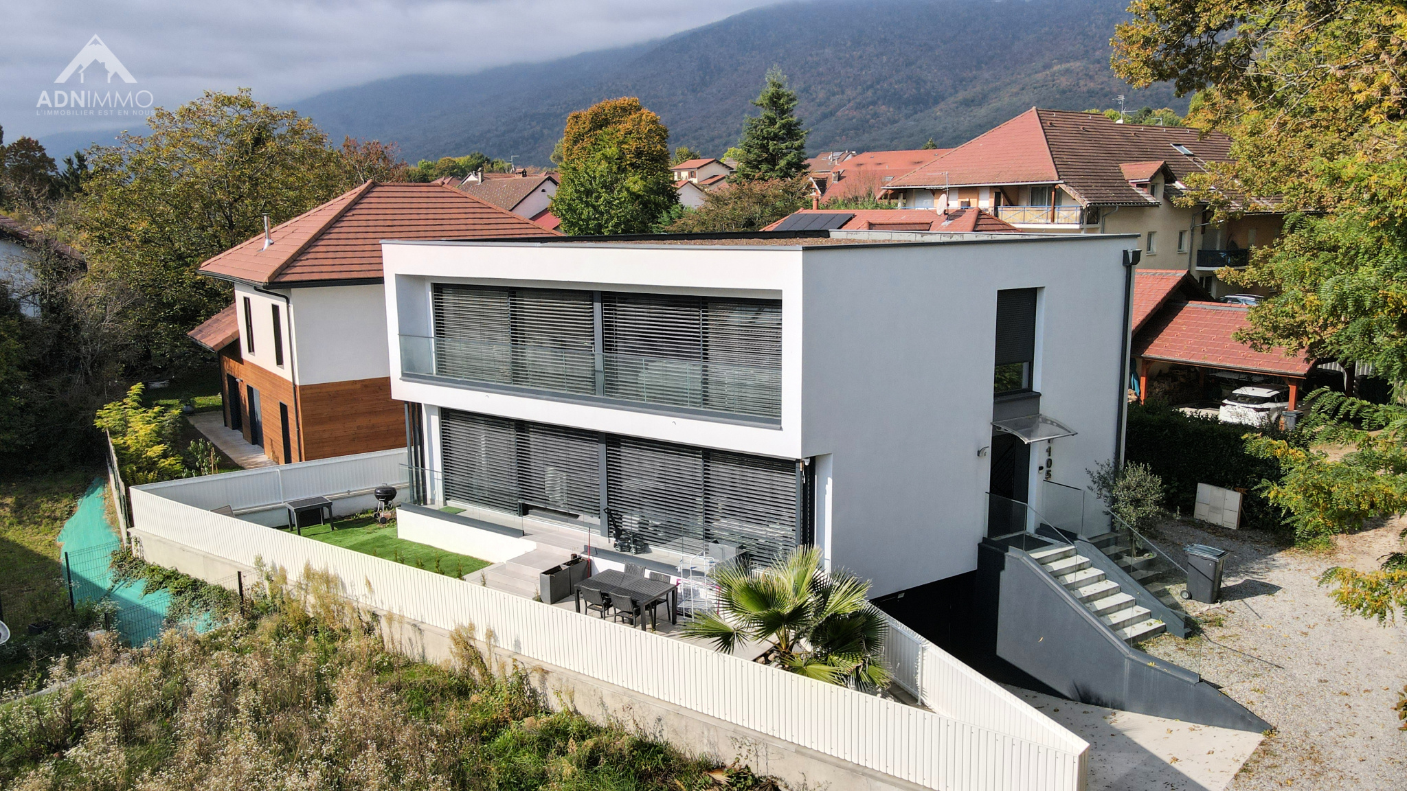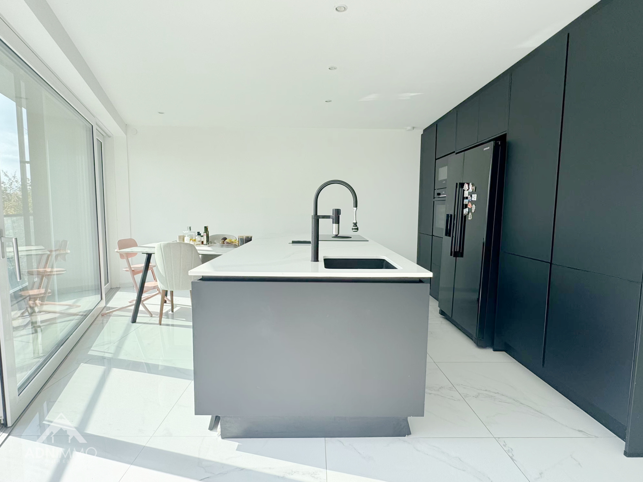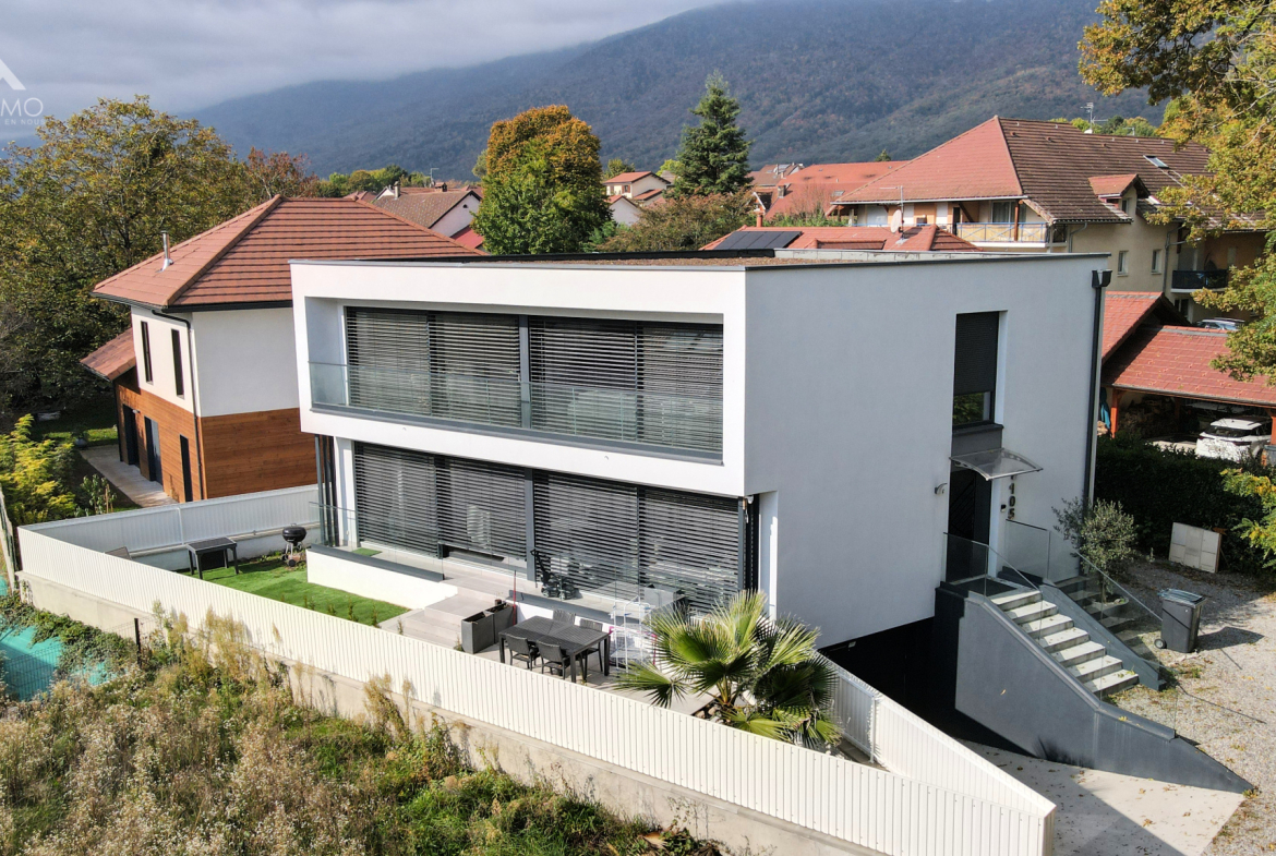 La maison offre des prestations haut de gamme : pompe à chaleur, triple vitrage, brise-soleil orientables (BSO), matériaux de qualité, finitions soignées…