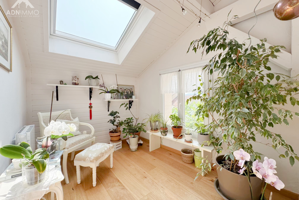 En complément, une grande terrasse exposée plein sud et son jardin paysagé, un garage et caves.