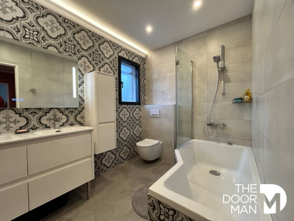 À l’extérieur, vous profitez d’une piscine avec des parois en carreaux de Bali, d’une terrasse, d’un abri de jardin, d’un éclairage de jardin, d’un système d’arrosage automatique et d’un espace barbecue, pour un usage fonctionnel du jardin. Bien soumis au statut juridique de la Copropriété.